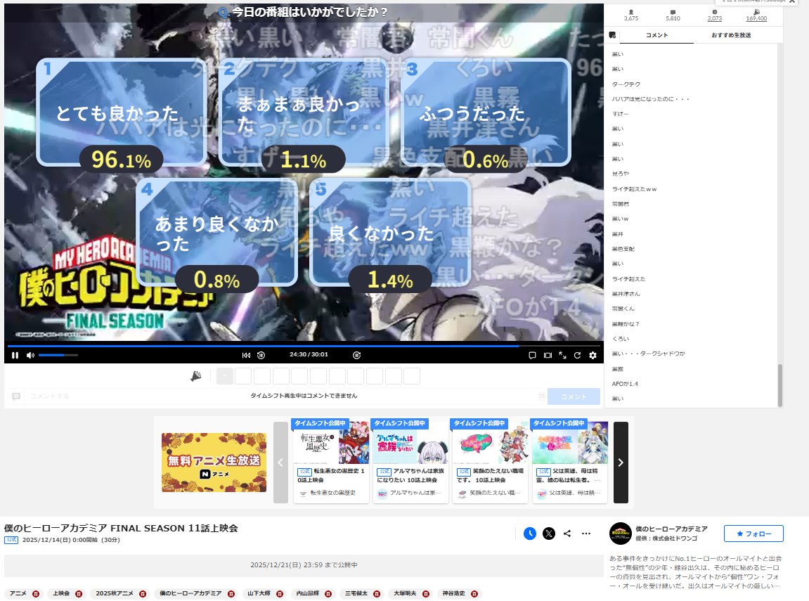 Niconico live rating for mha final ep