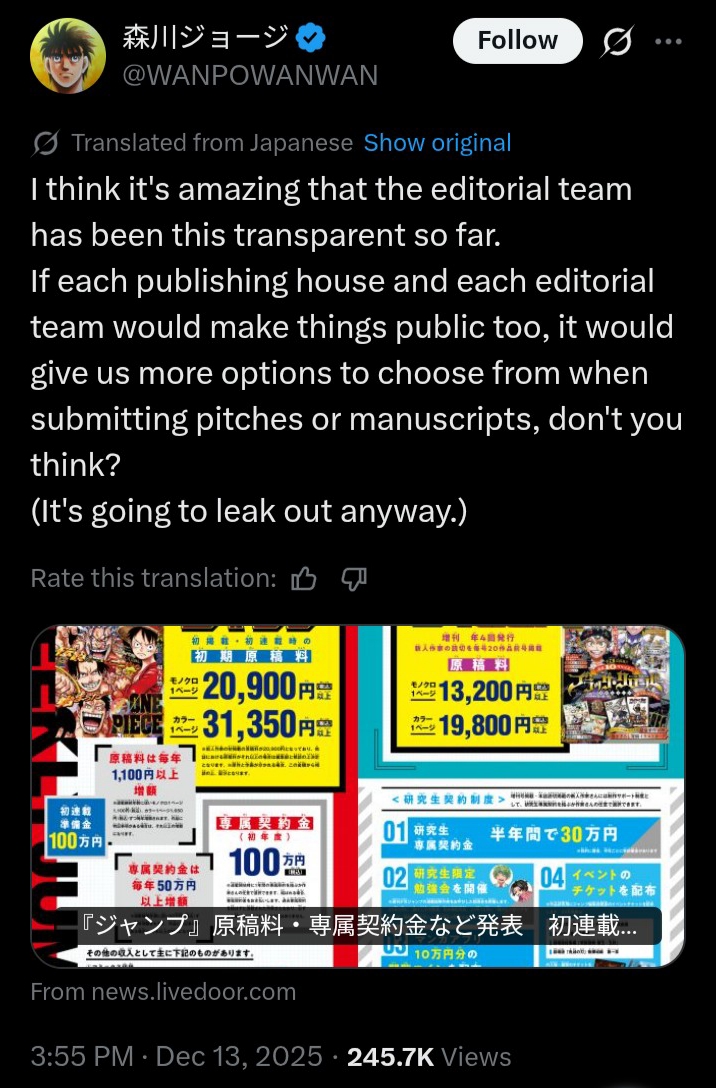 >>284467564Does WSJ have the highest pay rate in the manga industry? I wonder what the numbers for WSM and WSS look like?