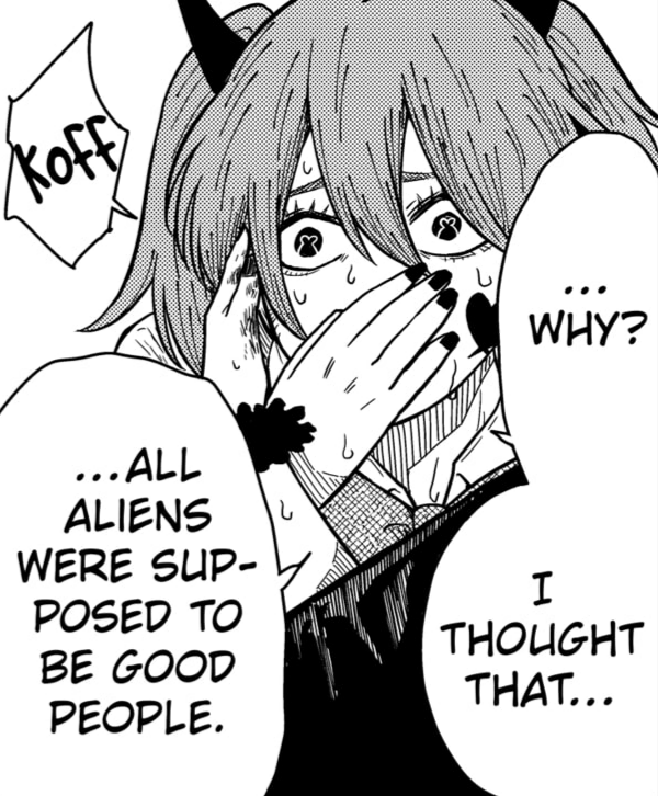 >Seiran became a total schizo and imagined his sister telling him to club aliens to death>He was actually 100% on the dot and she was even more ruthless than he is Honestly, I didn't see this coming like 5 chapters ago.