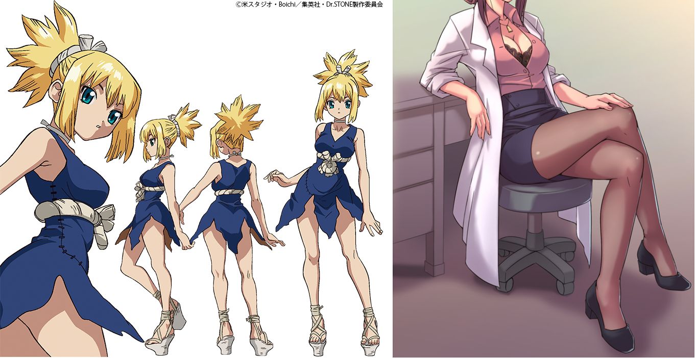 Requesting Kohaku as Senkuu's sexy lab assistant.Take any design liberties you want, but she definitely has to wear glasses, heels and pantyhose.