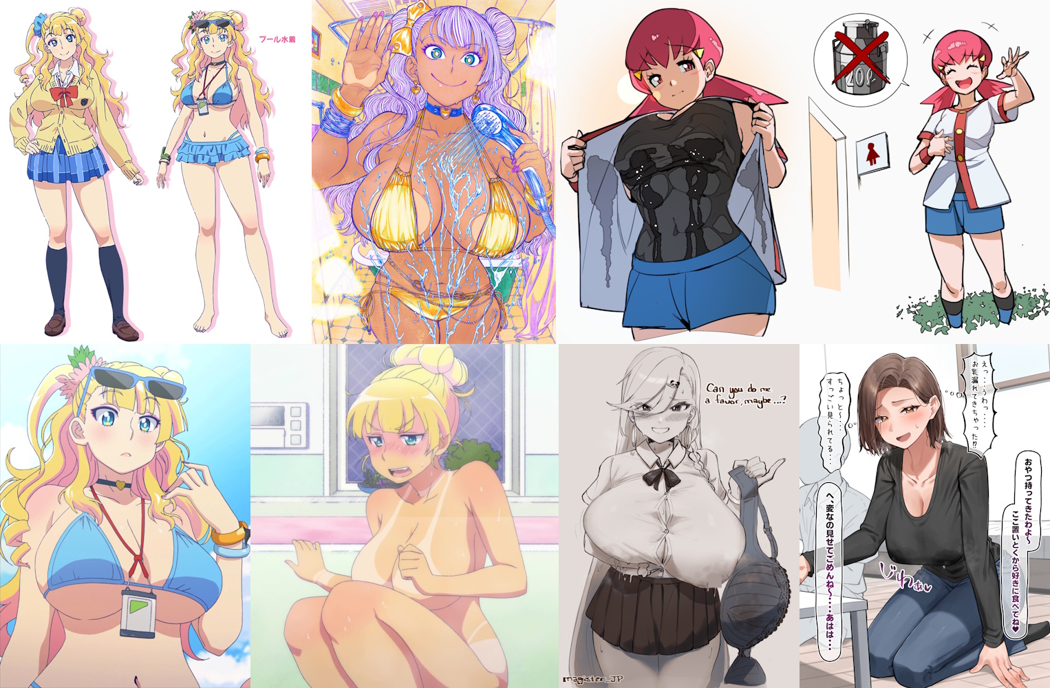 Requesting Galko from Oshiete Galko-chan looking embarrassed after accidentally soaking her shirt by lactating. Optionally with Galko having some dialogue asking a guy to please lend her a jacket or help milk her tits.