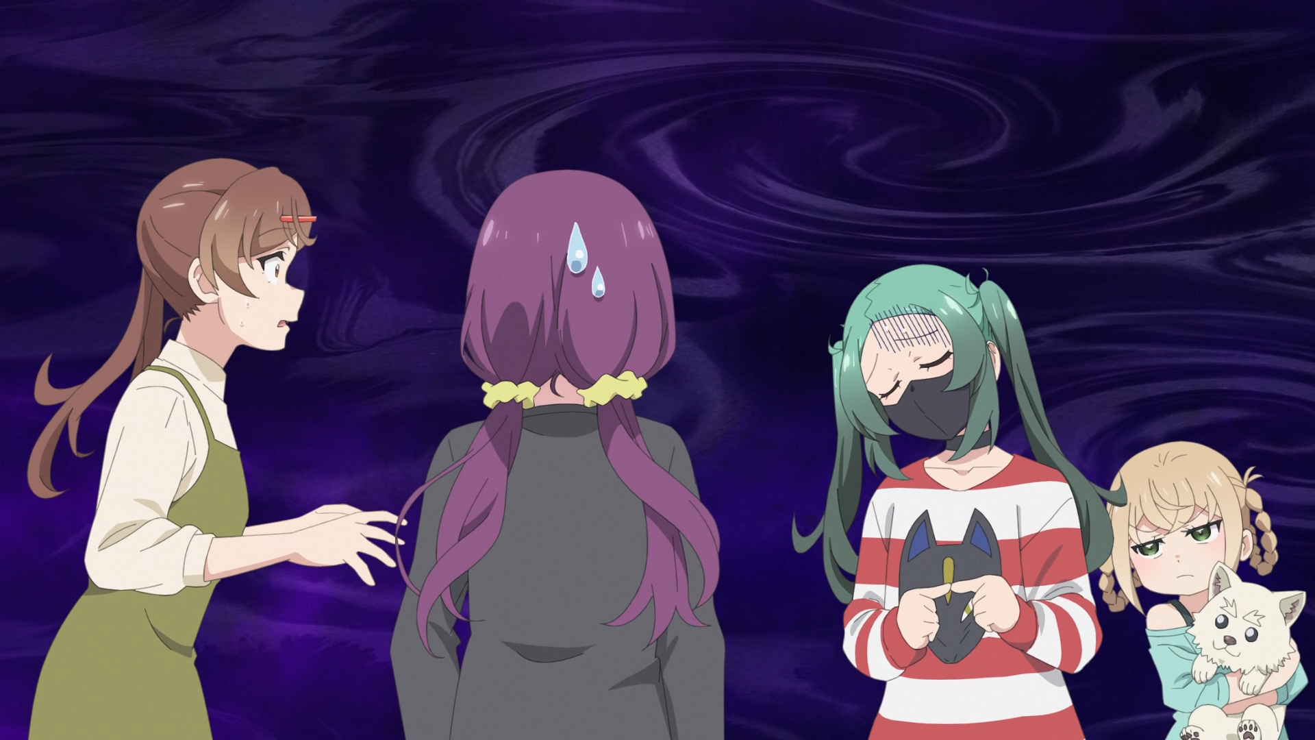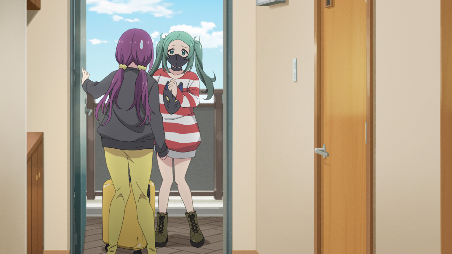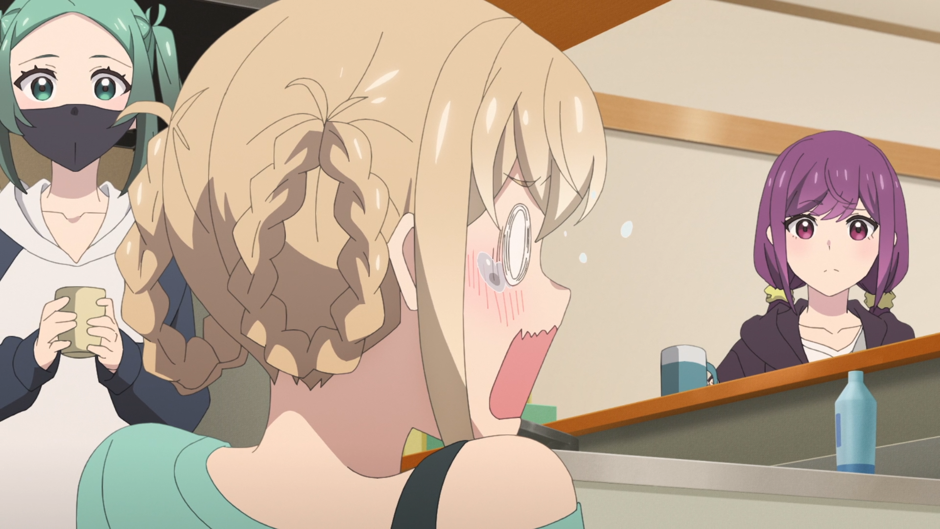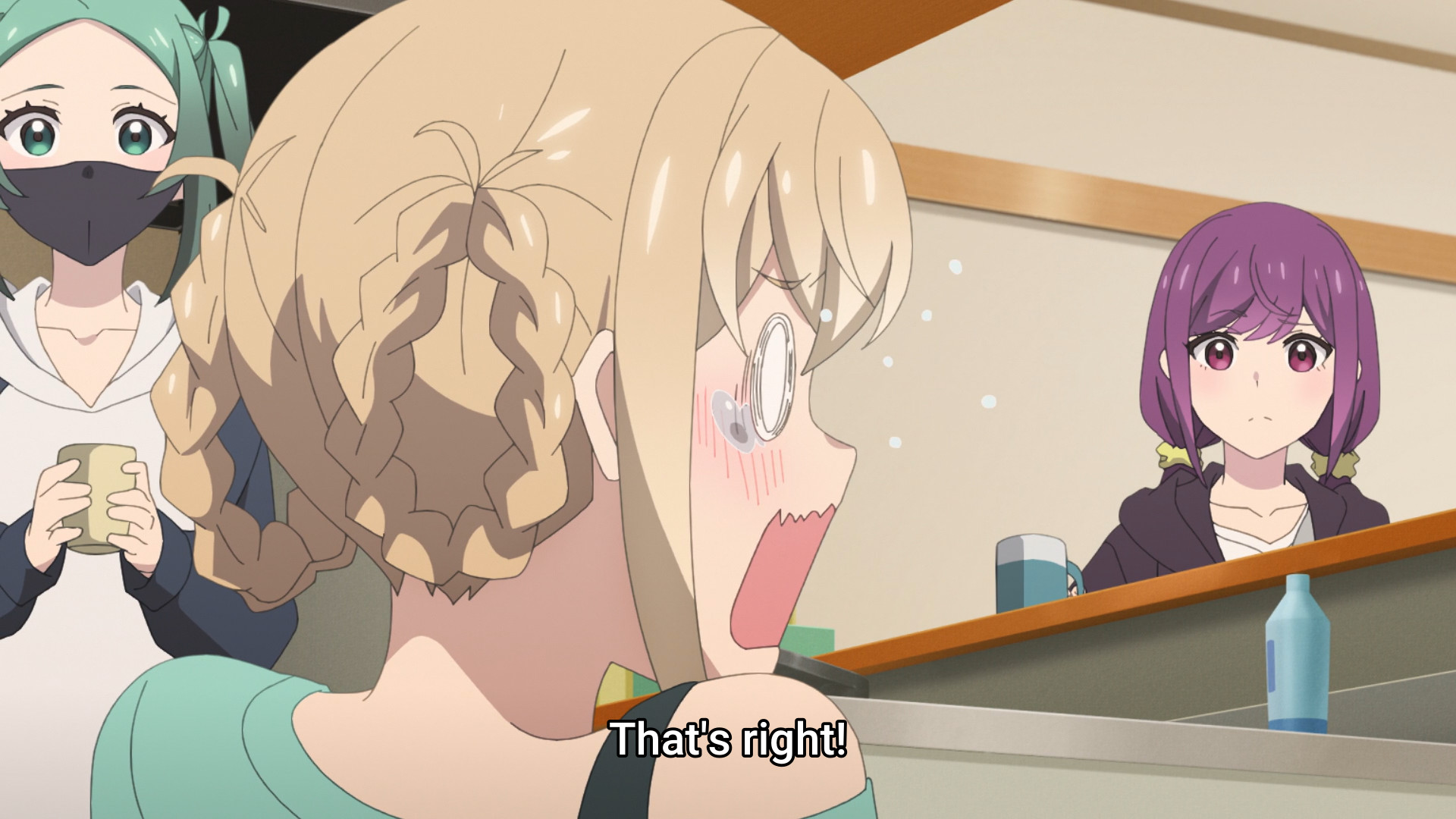 She's inviting an underage girl to stay at her place? Is this what mangaka are like?Some mangaka go off the deep end when their series gets axed. Like that one cleaning manga.Nice chill groove when green shows up. There is something weird about people who wear masks all the time. They should have had the VA muffled.How is she going to drink that tea with a mask on? Does she have a straw attachment?Very cute daito.Holy fuck she has her mask off.What a good wife shoji girl is.Another good episode.