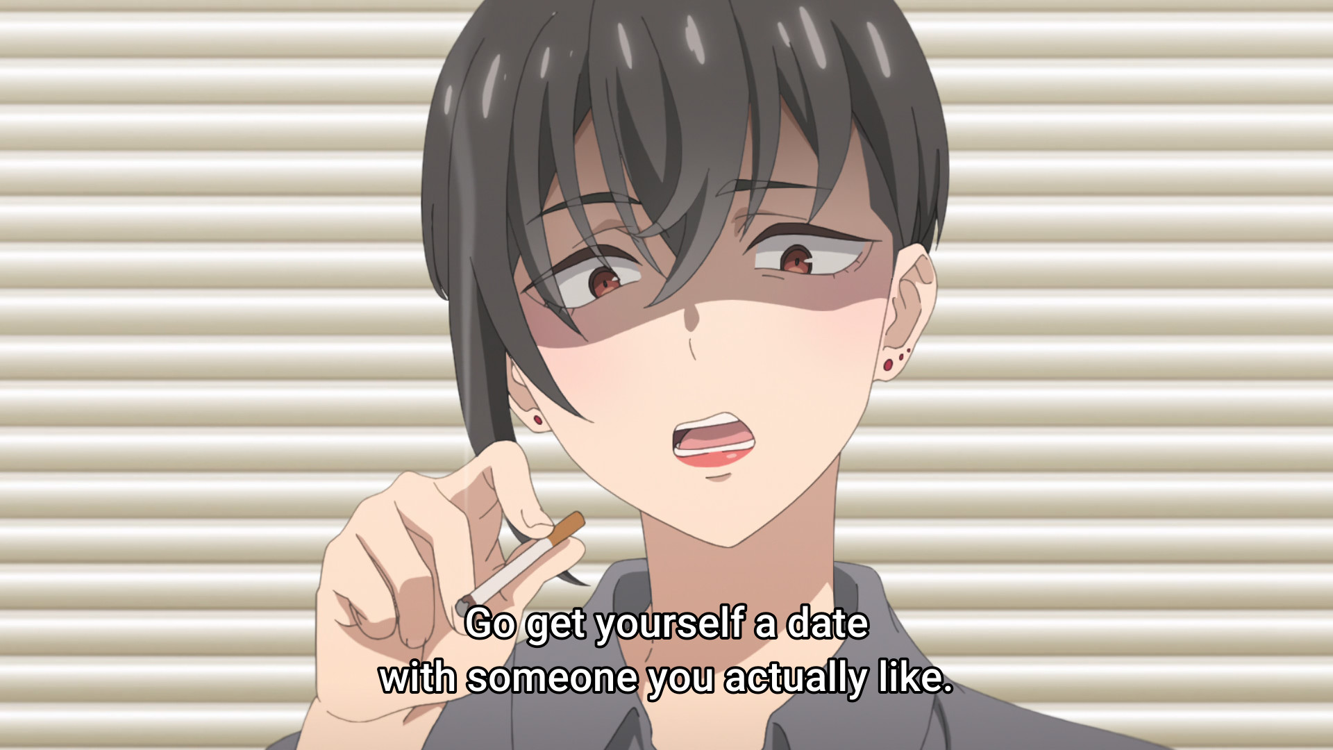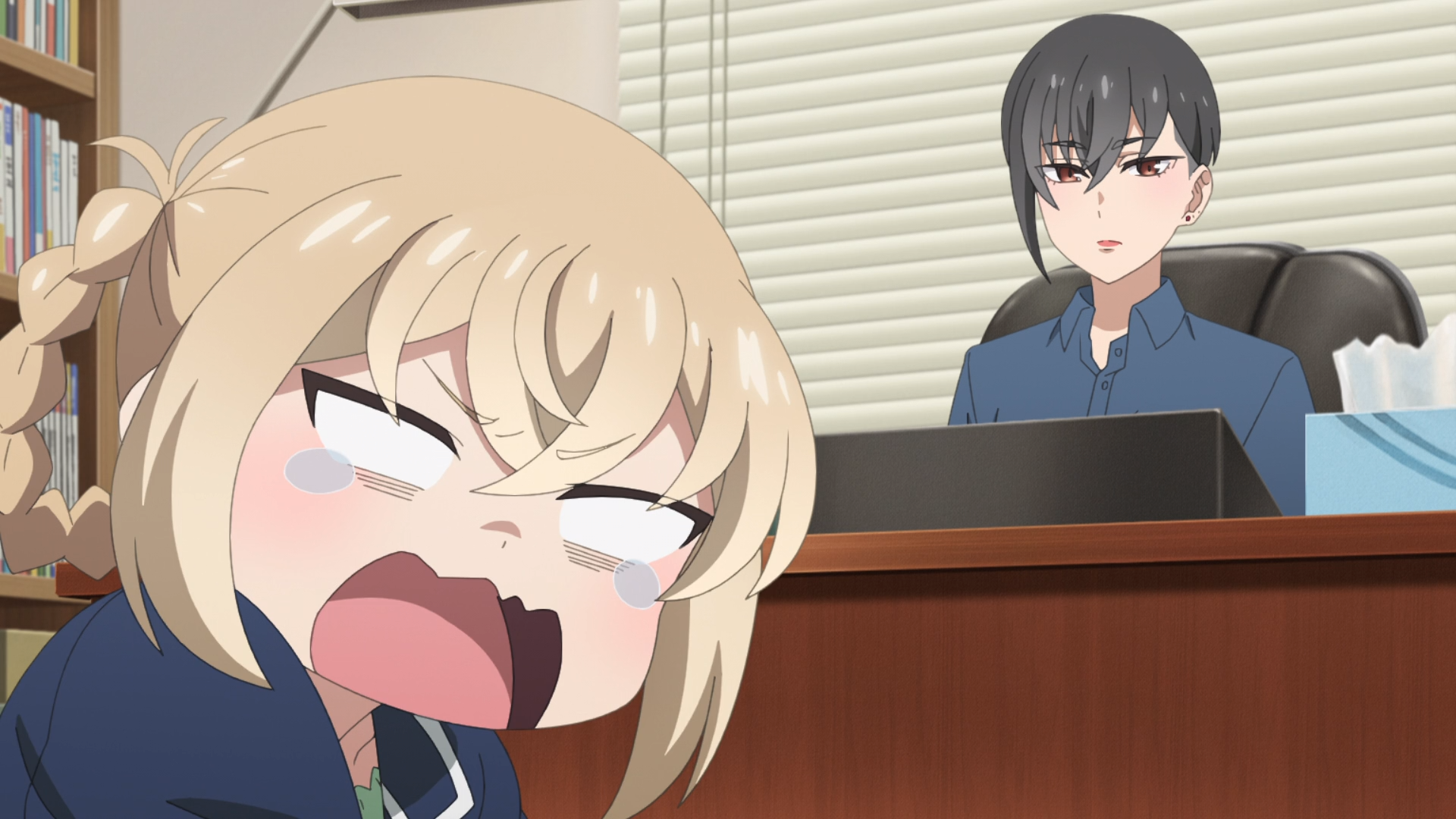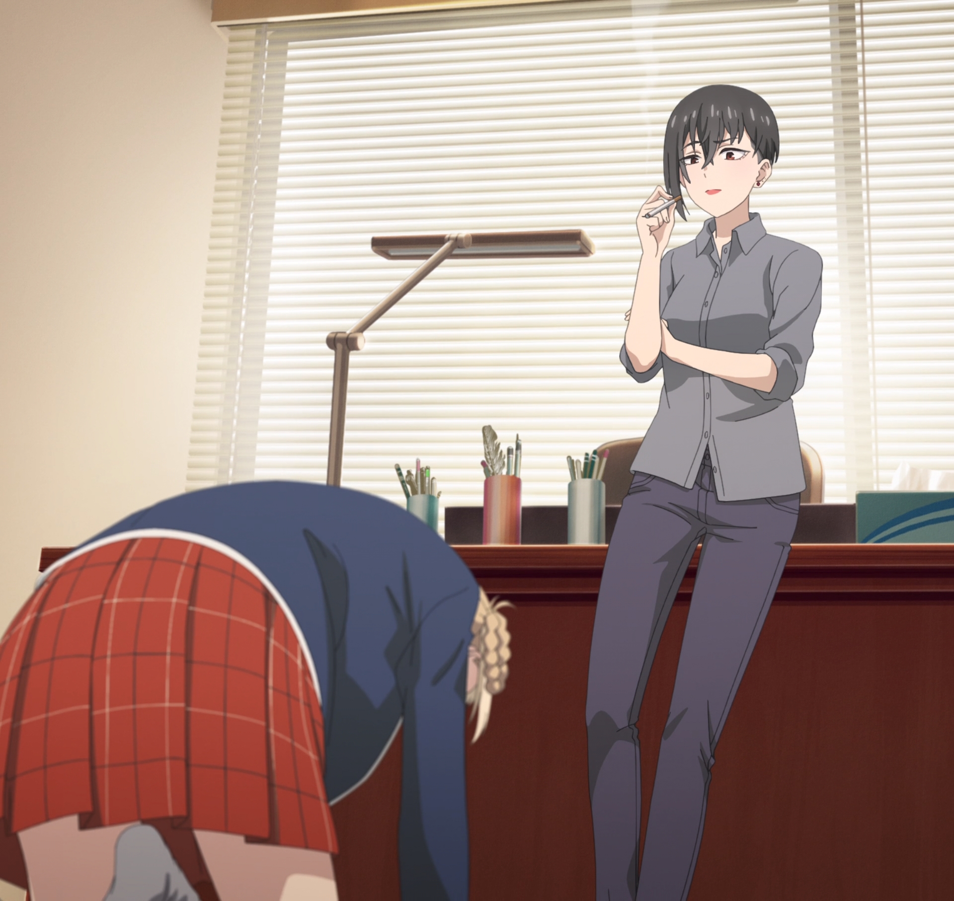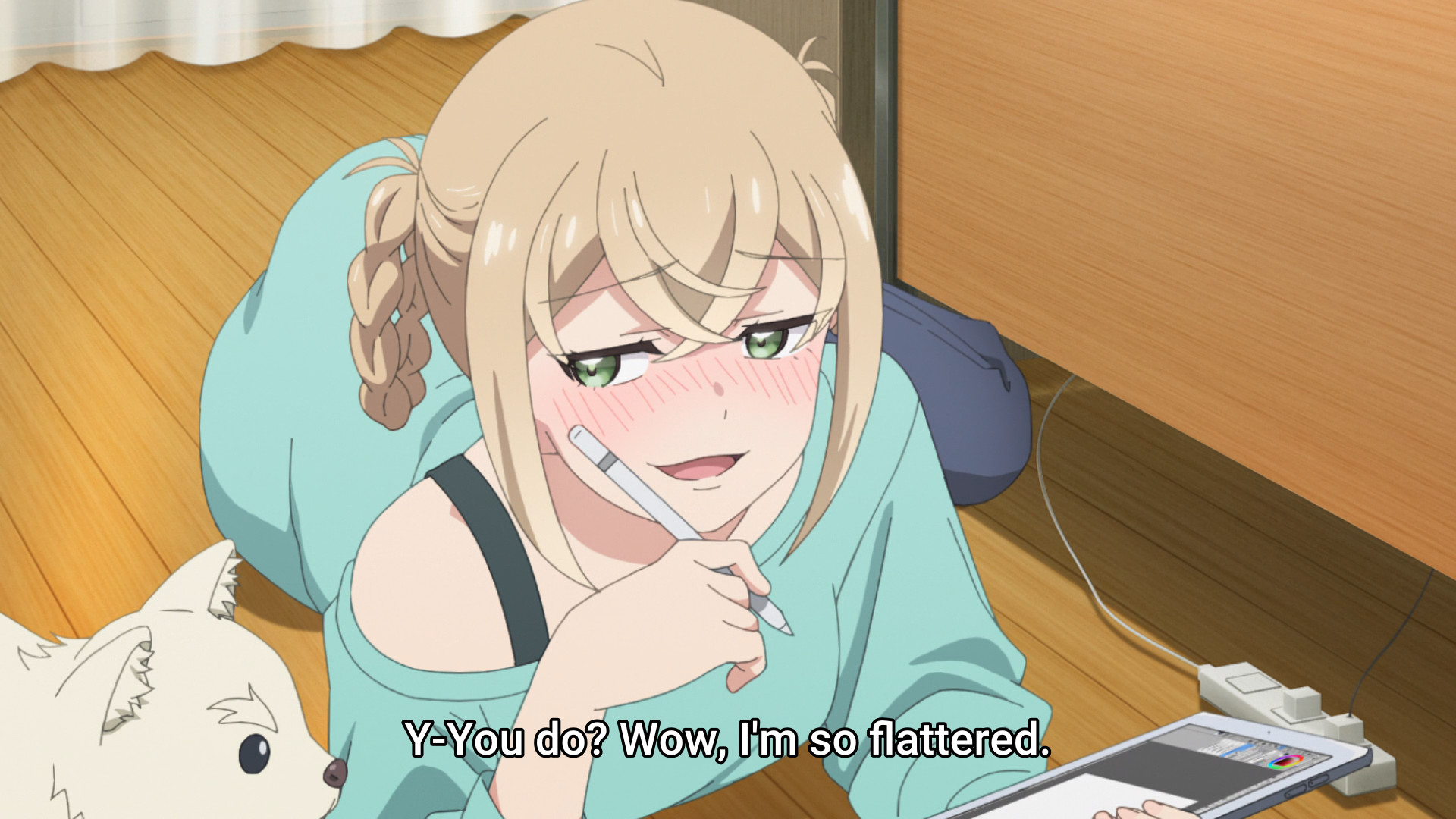 She's inviting an underage girl to stay at her place? Is this what mangaka are like?Some mangaka go off the deep end when their series gets axed. Like that one cleaning manga.Nice chill groove when green shows up. There is something weird about people who wear masks all the time. They should have had the VA muffled.How is she going to drink that tea with a mask on? Does she have a straw attachment?Very cute daito.Holy fuck she has her mask off.What a good wife shoji girl is.Another good episode.