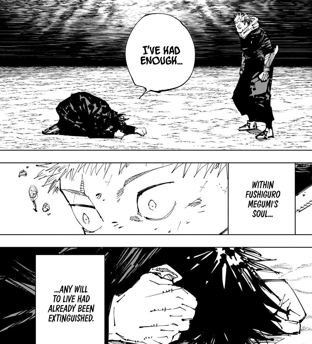 >>284537078>Forced to kill his friend doura to feel what Gojo felt when he killed Geto>Suffering the loss of his sister like Megumi>Can't fuck the chef again (thanks to Yakumaru with the kozo hairstyle)