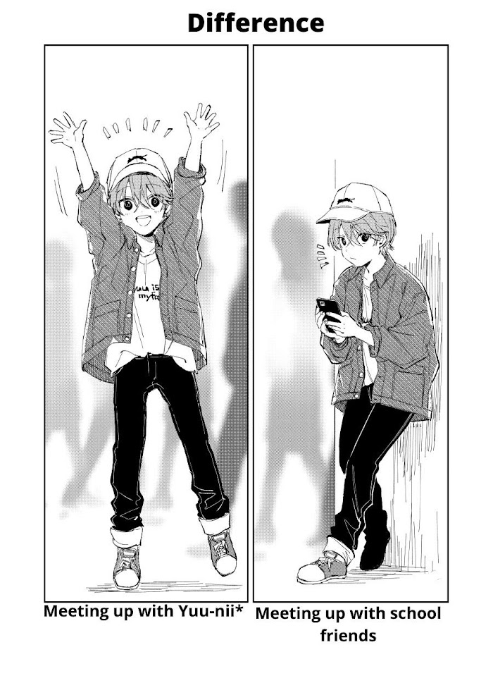 >At first, it was purely a hobby manga that I personally updated on social media, so I used an easy-to-understand category name as the title, but considering the circumstances that would arise from using a wide range of category names as titles when it was adapted into an anime, I decided to change it to "Me and Yu-nii!"