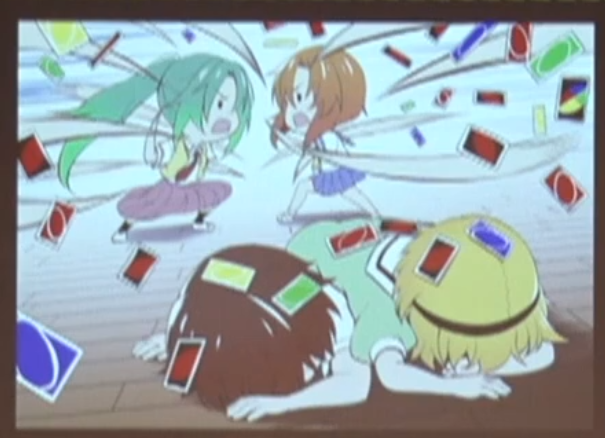 >>284562373Sotsu reading drama for the Watanagashi day after the ending of Sotsu's airing.There used to be a youtube video recording although I'm not sure it's still around. It's basically a post-Sotsu sequel to Hirukowashi, with Eua making the club compete against each other for the jewels of eternal love (while Rika and Hanyuu on the sidelines try to stop her).It comes down to a Rena vs Mion fight since Satoko was kind of unmotivated, since she doesn't need that jewel to get along with Rika forever, and Keiichi couldn't decide on one of the girls, while both Rena and Mion were 100% focused on Keiichi.Then in the ending uploaded online Mion wins, Hanyuu interrupts and tries to attack Eua with the Onigari, but Mion catches her in a trap. But then Rika distracts Eua with her favorite snacks, but Eua falls apart because they were secretly spicy and she hates spicy food. Leading to the punishment game scene.There's supposed to be another variant where Rena wins, Hanyuu's surprise attack succeeds and Eua is reduced to chibi-Eua again, but it wasn't uploaded online.