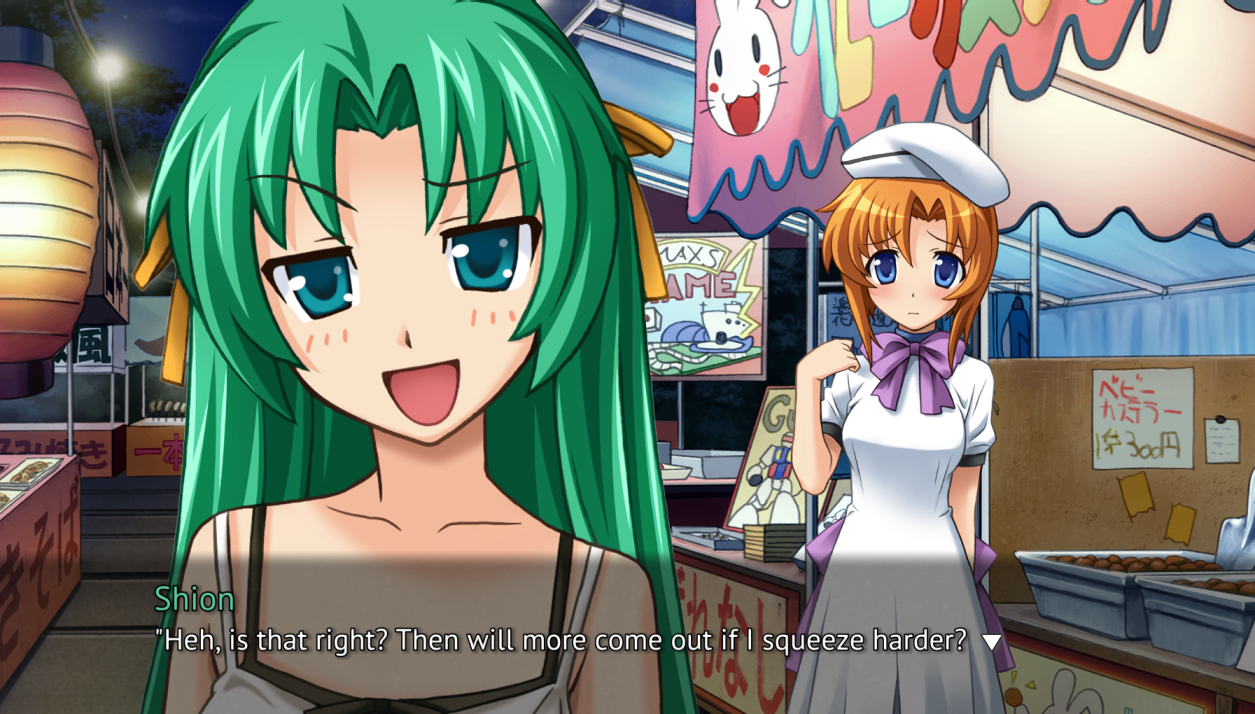 Rena and Mion are lesbians and fuck eachother.