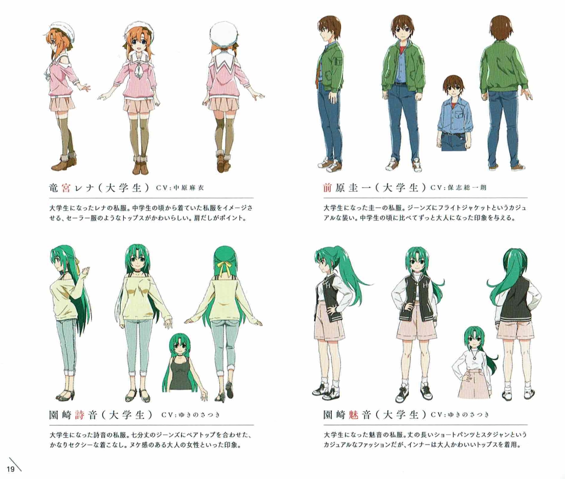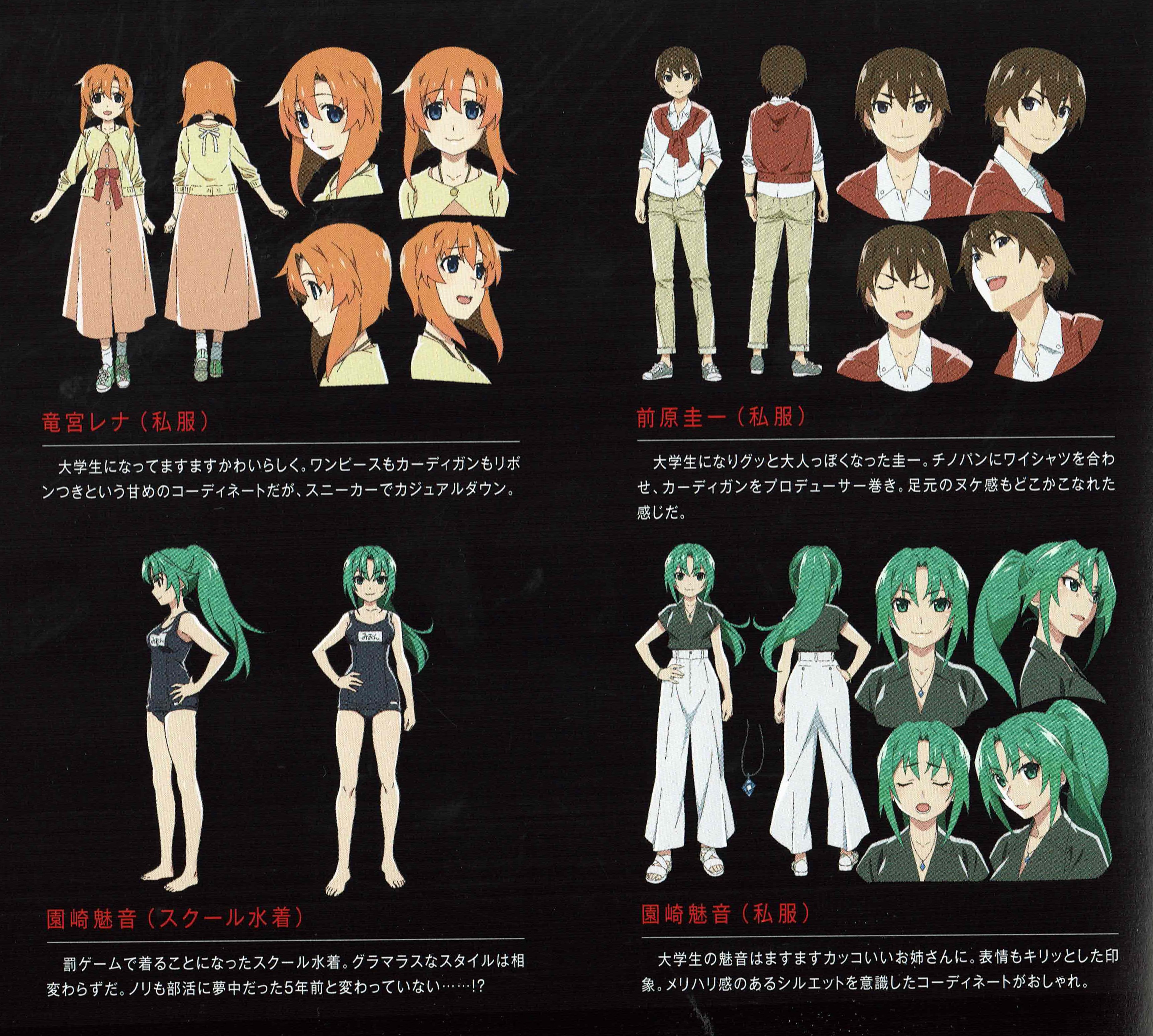 >>284584252Yeah, the description describes them as also college there, just the main title says its casual clothes (私服)To be honest I don't remember when exactly the meetups like >>284573638 happen, how deep in Rika and Satoko are at St Lucia, if they made those first designs for college too and then just fucked up the timing and brought them out when they're supposed to be in high school or whatever