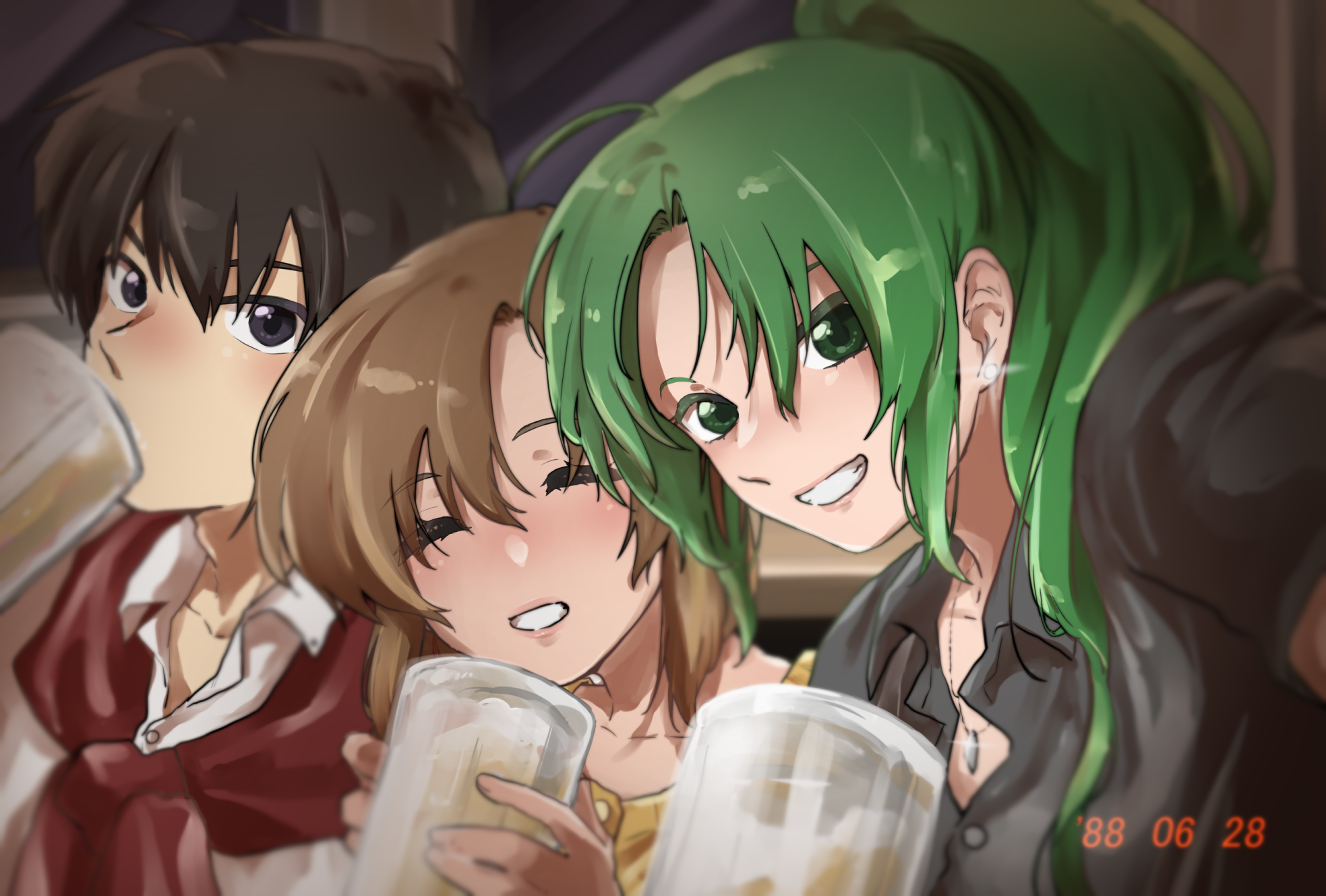 >>284589554That makes me think, how would each of them behave when drunk.Rena does sound like one of those overly affectionate types of drunk people.Mion would try to stay normal at first, but then bit by bit force Keiichi into giving her a lap pillow and then blaming it on the alcohol the next day.Rika would switch to her 40 yo hag voice and go on a pseudo philosophical rant about life being cruel (while nobody takes her seriously).Satoko would proclaim that alcohol doesn't do anything to her and then end up as the first one on the floor after the first two drinks.