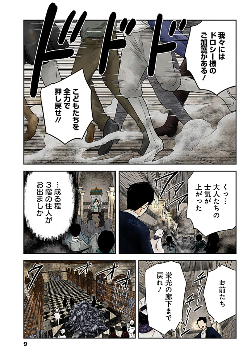 >>284551970*bang bang bang*>Nowhere!>Just how selfishly will they behave until they're satisfied?!>Don't tell me they poked in their heads down there?! About a 90% chance for that, eh?!*bang**sssh*(quick Shadowification)>Oi, punk, what's a first floorer doing on the second floor?! There's been a call for everyone to convene!(What a rude man!!)>There came a letter about preparations for the soot train, but the manager is out...>I can't go back until I get a signature.>Whaaat?! What's what you're on in this kind of crisis? That's why you're still on the first floor, punk!>If there's a letter, how about you just follow the instructions?!>Gimme the paper! King will sign it!>>284552006>Everyone, bow!>>284552042*step**glance*>Aah ... it's so disorderly ... how filthy!>>284552061>Lift your heads.>Dorothy-sama is showing her face...!>Push back the children to the Passage of Glory.>I will do the rest after you've done that.