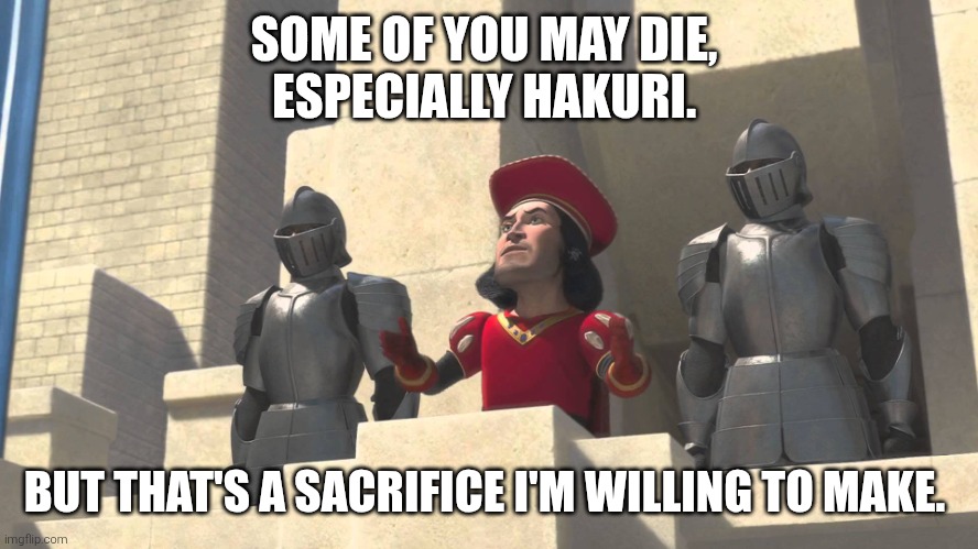>>284567622he should start with hishaku scum then. Hakuri is the last guy he should care about killing.