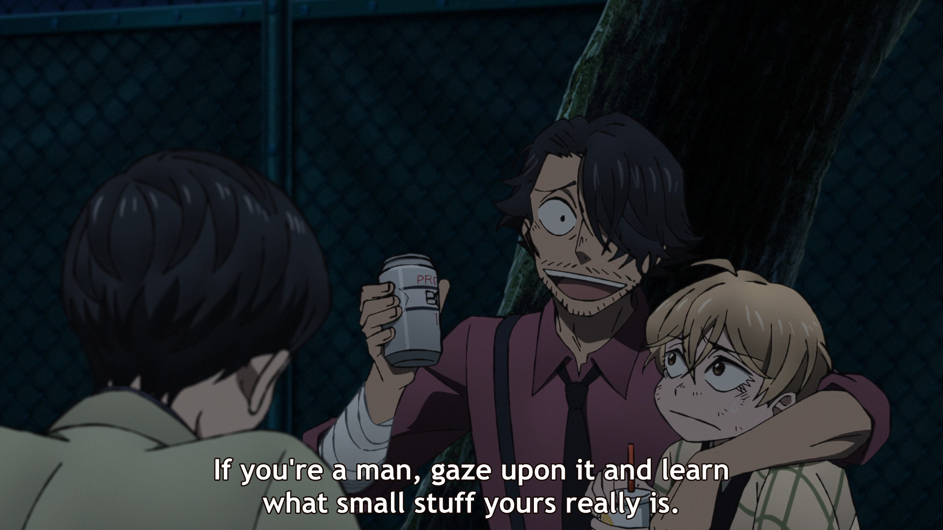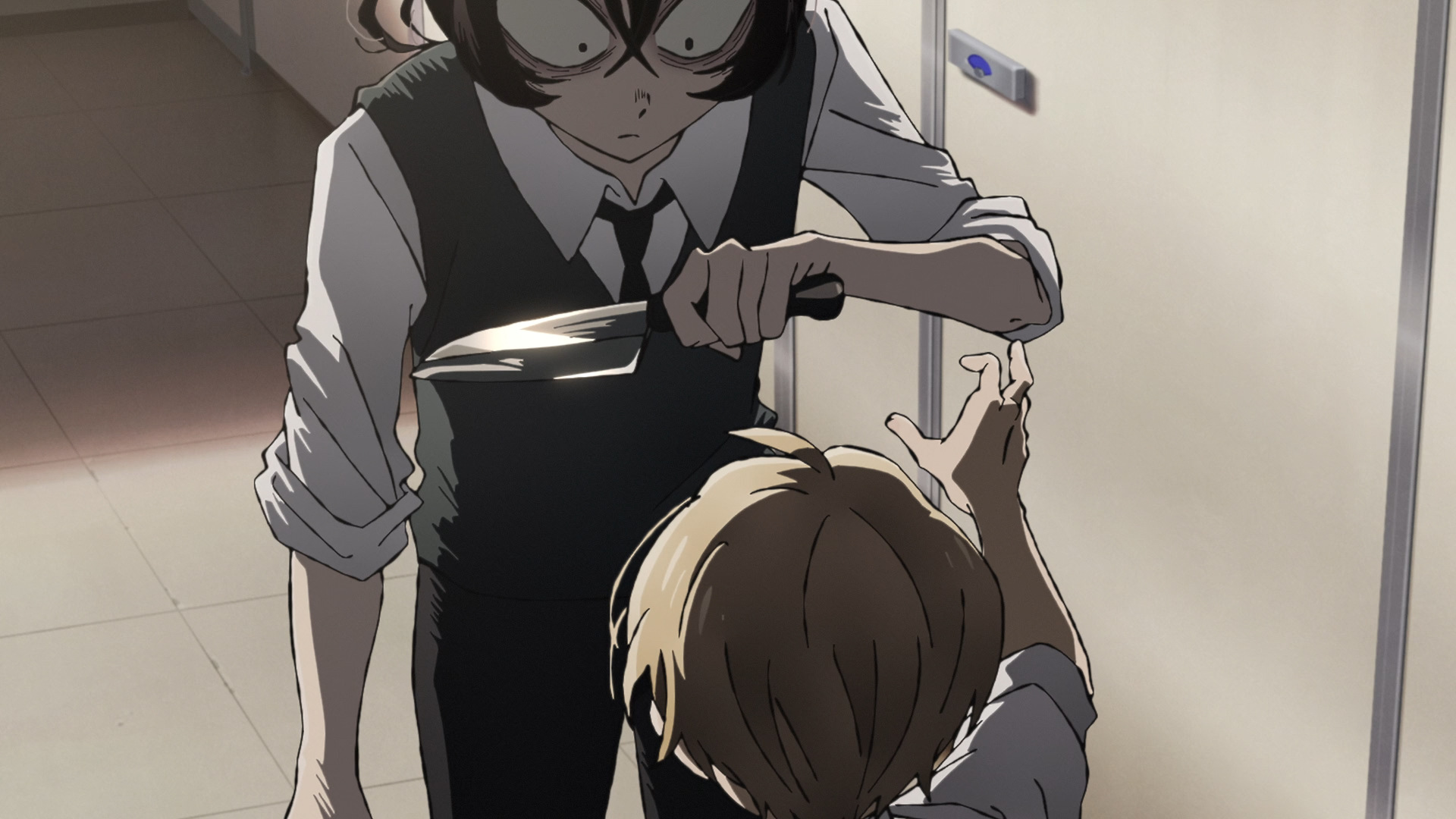 That's how it fucking ends? Oshibu just pushes him off a roof, literally nothing happens and he goes back to the school? And the Ono who we were lead to believe died last week just about manages to actually survive for an extra few minutes to really die in Fuyumura's arms as one extra gut punch? Bit of a shit final ep