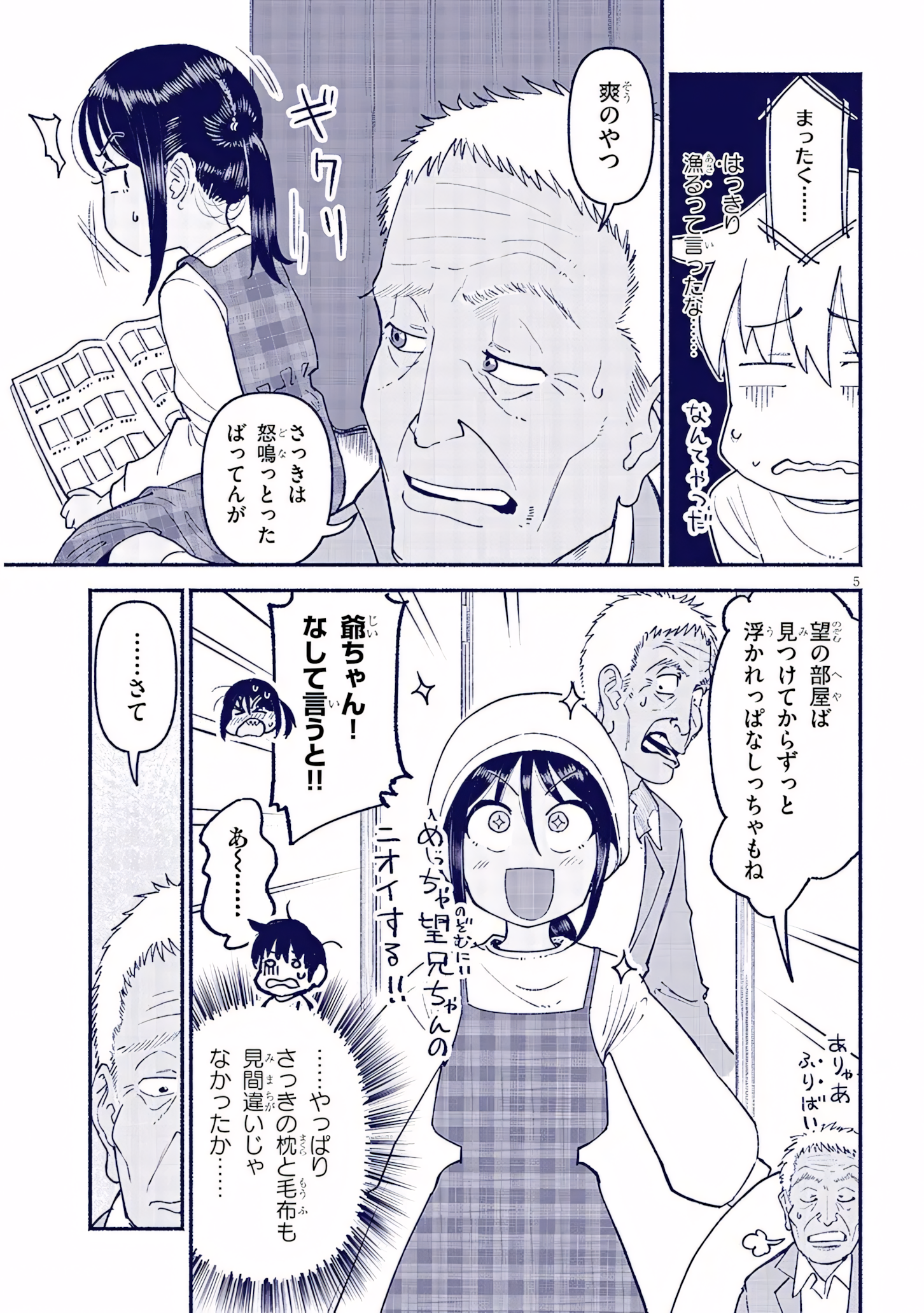 >>2846162825:Oh, you…[outside] She actually said “digging through his stuff” with a straight face…[below, handwritten] What a girl.Sou sure is something.[sfx] GulpShe was really pissed off earlier today.But the moment she stepped into your room all that just disappeared.[small by grampa below] Was she pretending?[by sou] It REALLY smells like Nozomu-nii-chan!![sou bubble] Grandpa! I told you not to say that!!Ahh……So I wasn’t imagine things when I saw her with my blanket and hugging my pillow…Alright, then.