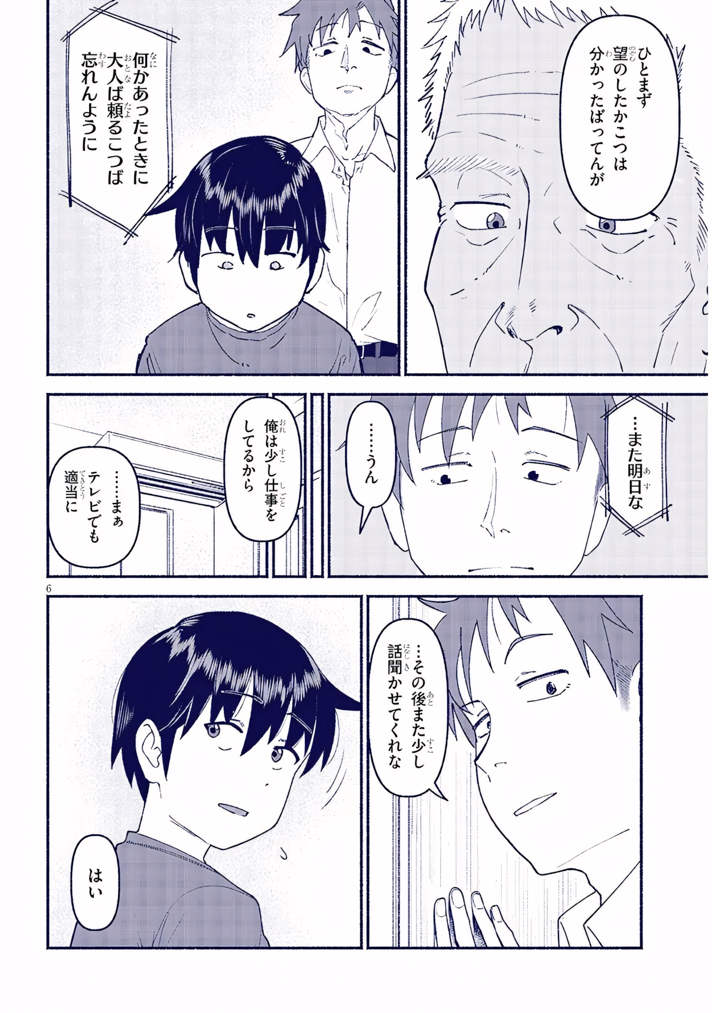 >>2846163549:Do you know anything about it?…Hahh…Where is he?[tv sfx, it’s hard to read but probably irrelevant] But my mom says I won’t be able to get married like this.[second tv bubble] Isn’t that different from what I’m saying?…I don’t know.Aoi.