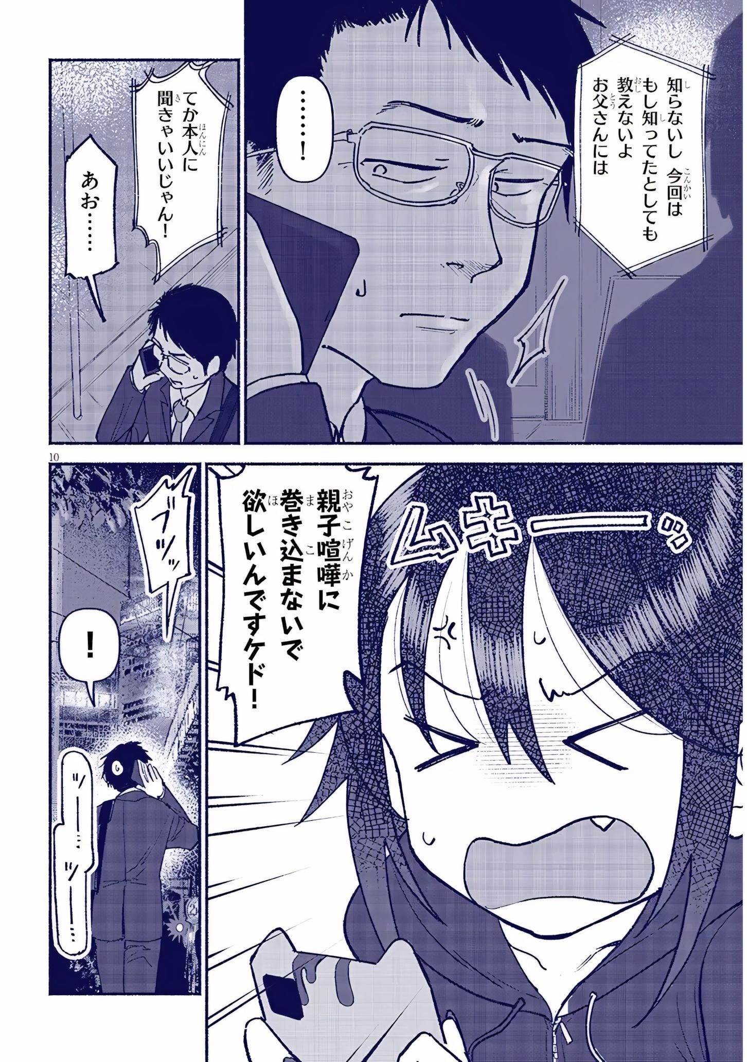 >>28461636210:I said I don’t know! And even if I did know, I wouldn’t tell you, dad!…!And why aren’t you asking him directly!Ao…[sfx] Angry!I don’t want to be roped into this father-son drama!Click!Call disconnected phone tones.