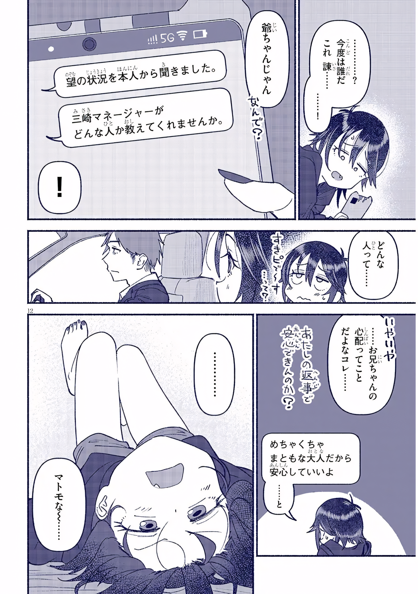 >>28461639712:…? Who is it now… Isam……!It’s Grandpa![small] Why?I’ve heard about the situation from Nozomu directly.Can you tell me what kind of person Manager Misaki is?What kind of person…[outside] He’s my bae~ …like I could say that. [you can change bae for crush if that’s too memey][outside] No, no.…He’s just worried about Onii-chan.[outside] So I should try to calm him down with my reply.[text] He’s a super responsible adult, so you don’t have to worry.…and send.…Responsible…