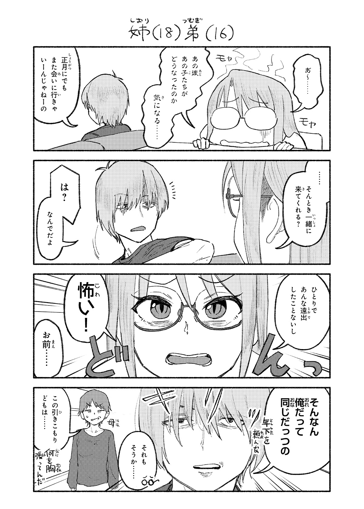 >>284616577Older Sister (18 years old) and Younger Brother (16 years old)Ah~[sfx] anxiousI am so curious about what happened to those two,after we left…You can see them again for new years, so you can find out then.…Can you come with me?Huh?Why should I?Because I have never gone on a trip that far away by myself.I’m scared![sfx] Bang!You…I haven’t done that myself either![small] Don’t rely on someone younger than you.[sfx] Sharp!Ah, you’re right…[sign by mom] MomYou two shut-ins…[outside] Why do you sound proud when saying that?
