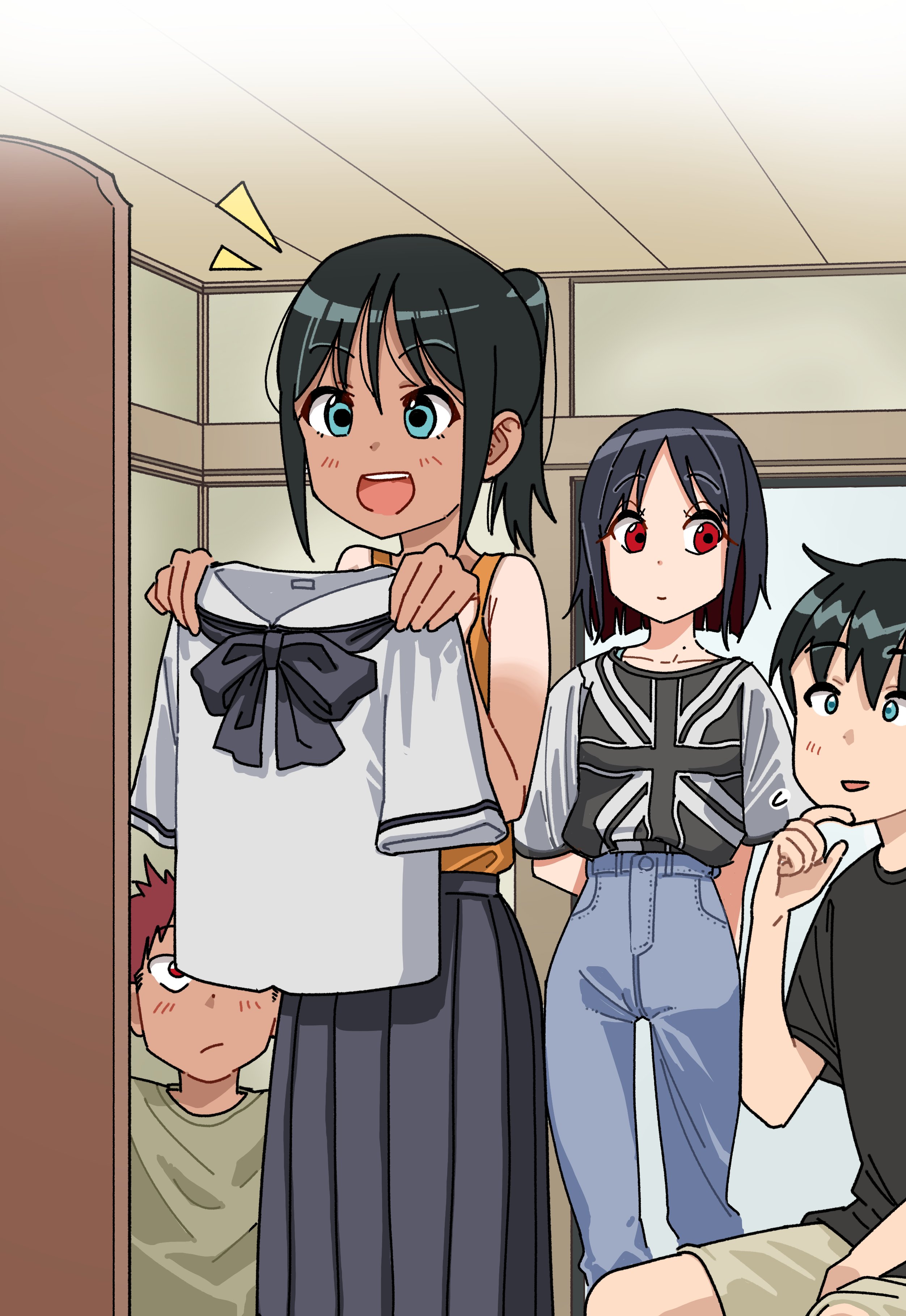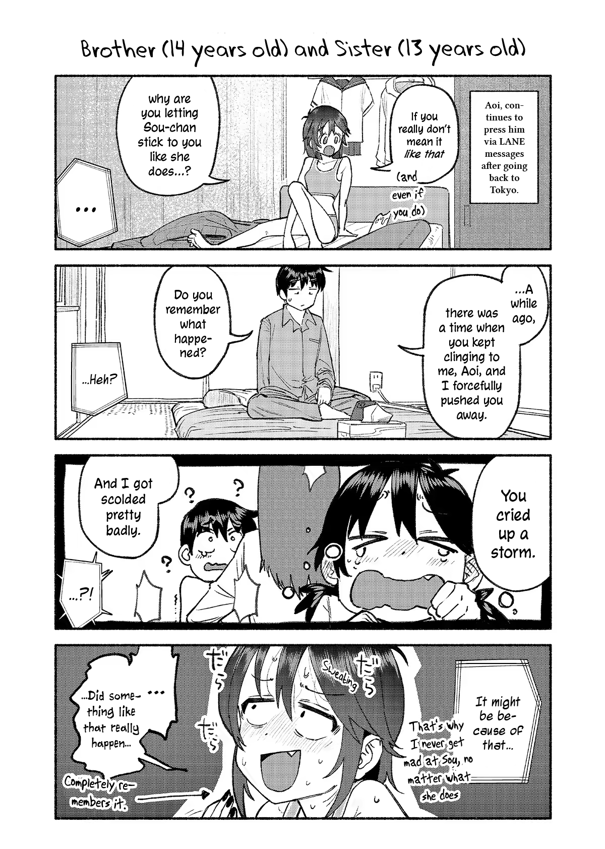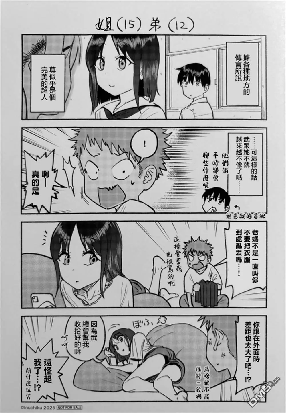 >>284616825I don't speak Chinese but I recognize enough of the characters that I tell how it goes... but obviously don't waste your time typesetting this.---Older Sister (15) and Younger Brother (12)According to the rumors around the area, Mikoto is a perfect super human.If that's the case, then why is Takeru the way he is?...[can't read the small text but the arrow one is probably "Unintentional diss" or smth]Ahh! Again!When you leave your clothes all over the place mom gets mad at me too...!Why are you so different from how you are outside...!?Because you'll always cover for me, Takeru.So it's my fault...!?