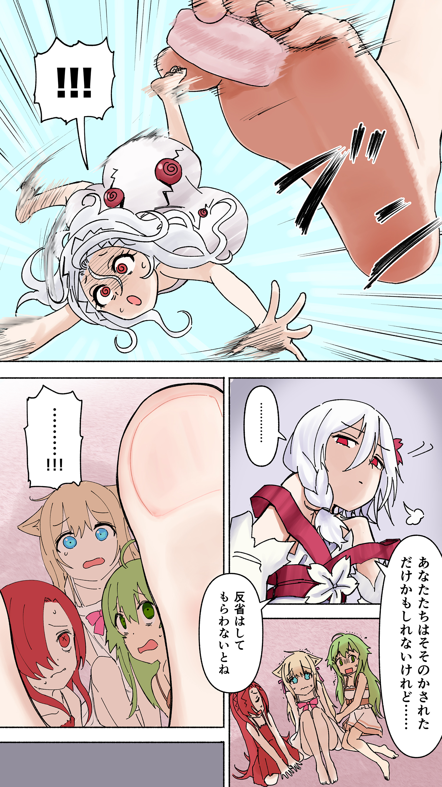>>28461643615:I’m really mad you left me behind, but…I’ll let that pass for now.You know you literally just tackled me, right…!?…Go get them!! // Don’t lose!!