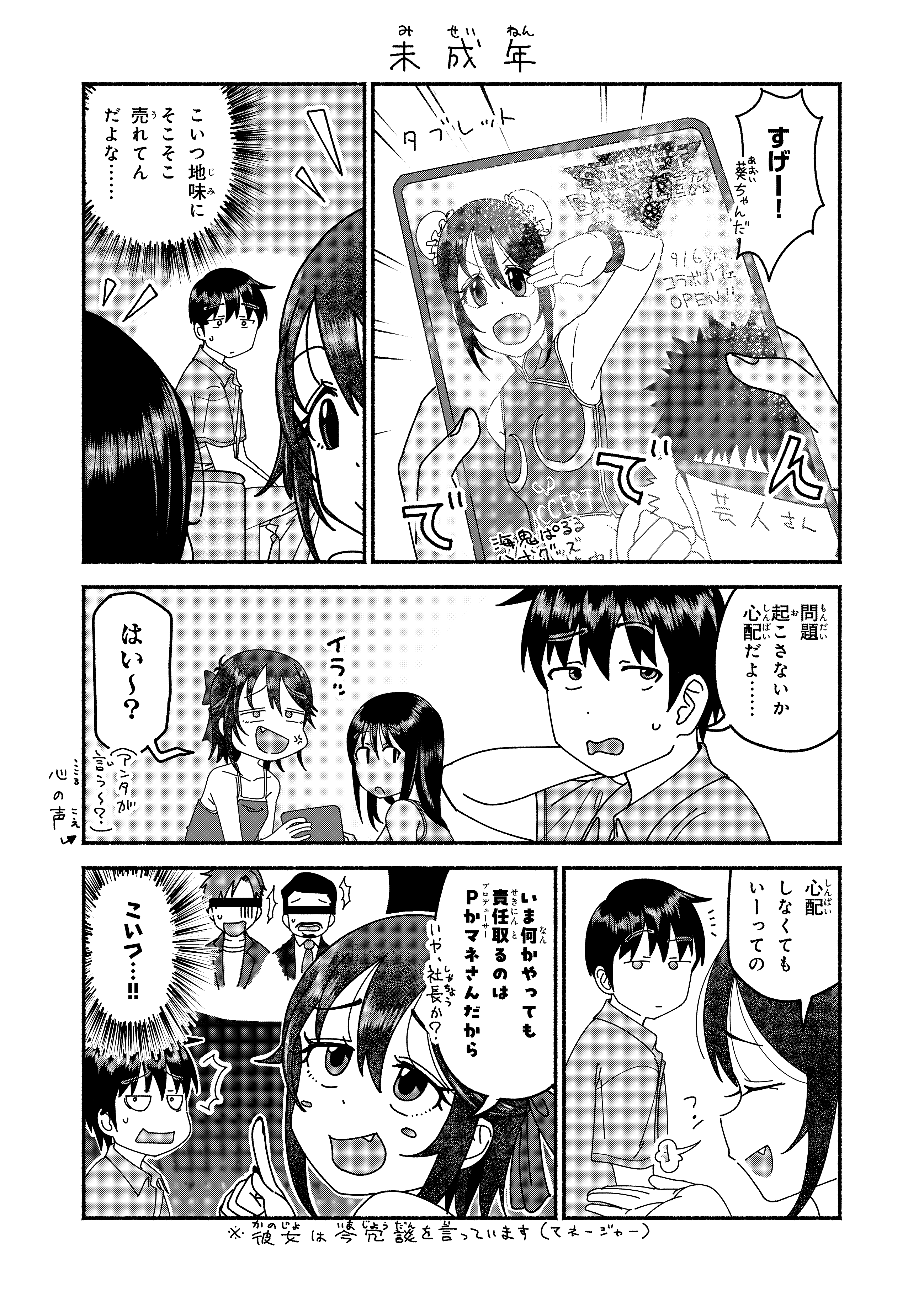 Thanks for the upload>>284616254>>284616295>>284616302>>284616317I'm sorry but I will never be ok with this producer-imouto side plot it just derails and overshadows the main story.On top of that to have MC in his house with her at the same time of all things like it's comedic situation or something.This fucker needs to be castrated and fed to pigs.Why is this shit in my cute cousin story.