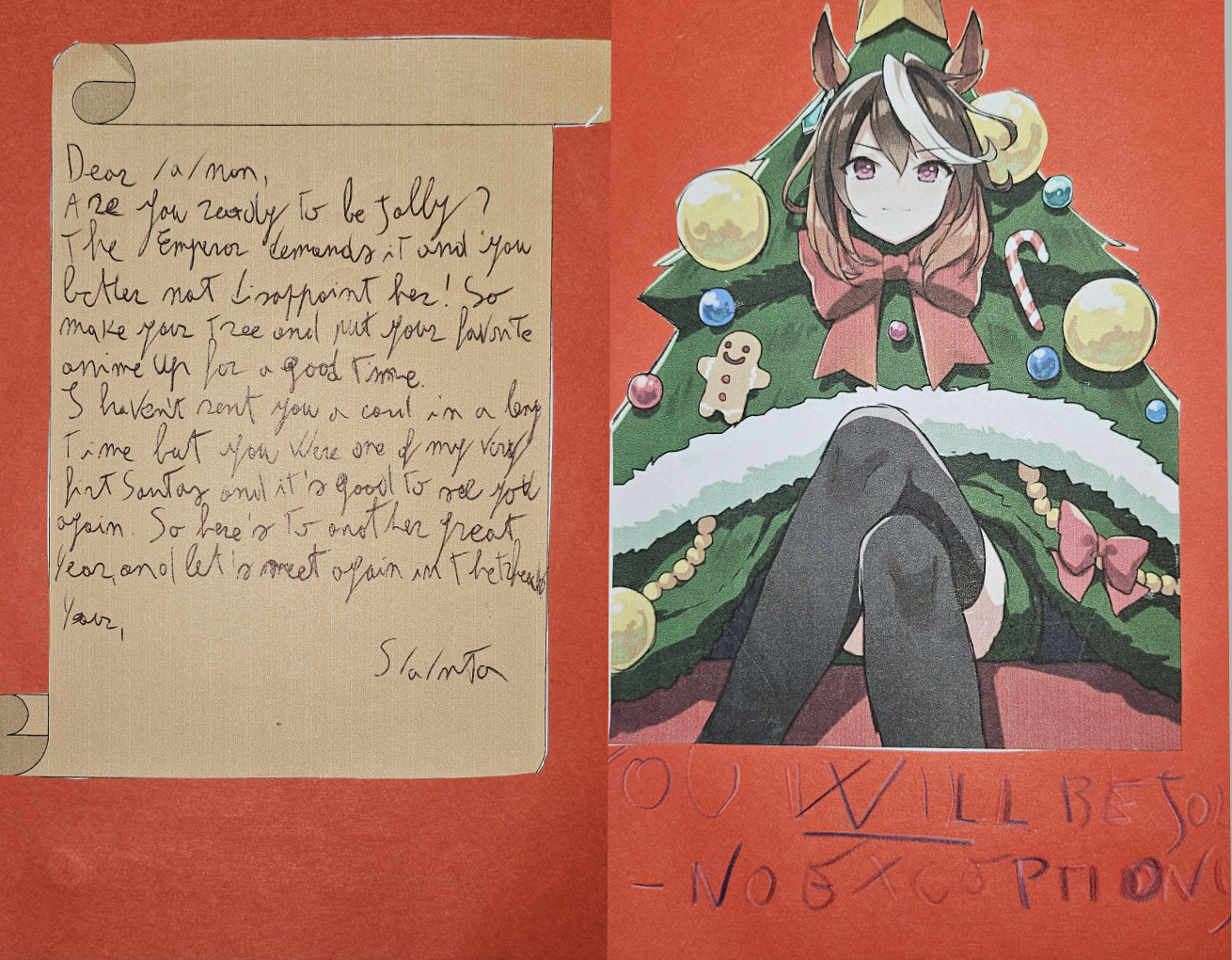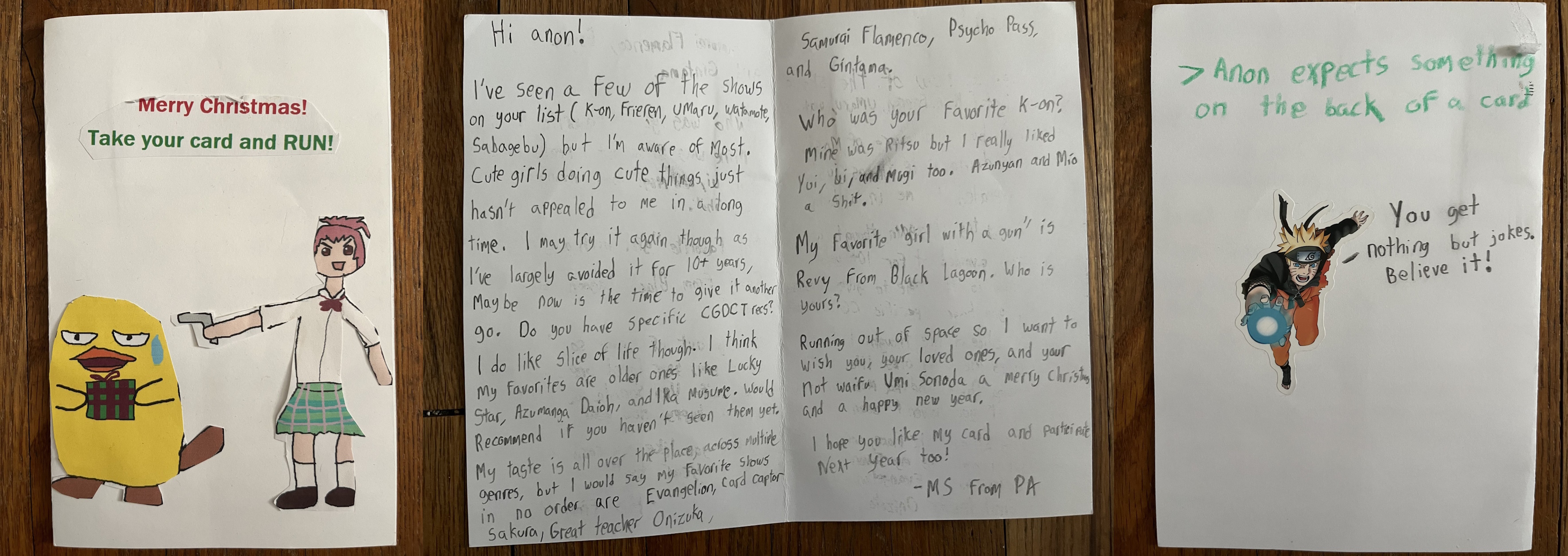 >get a single card every /ss/ despite always signing up for two or more>cherish them foreverIt's kinda late for 2025, but next year I'll probably send regular cards to my Santas.