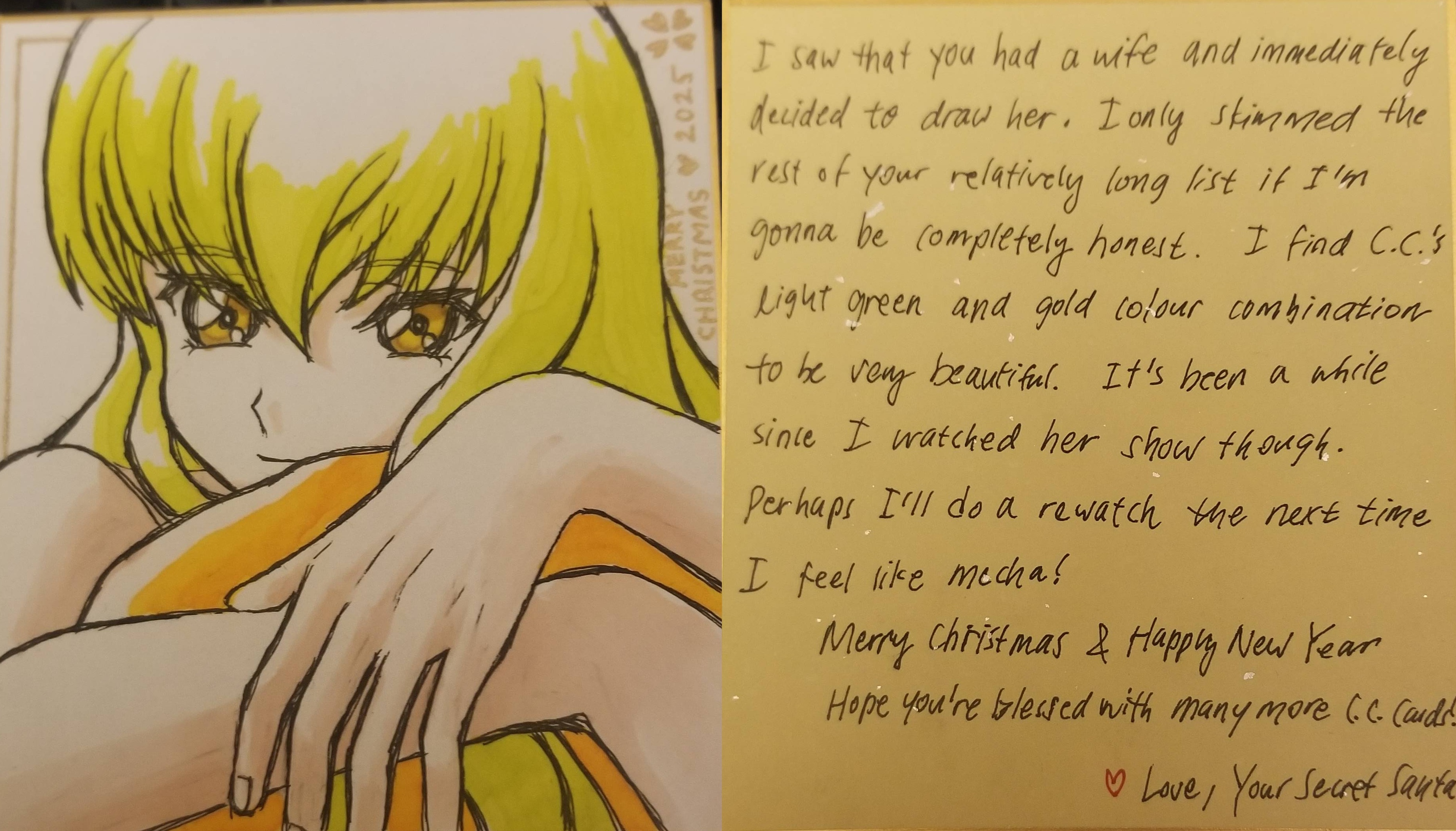 >>284627932 FV from Italy.I got your card already.Many thanks for the card! I always appeciate cards made with care. Manhattan cafe items are a bit hard to find when I was in Japan, because I have to go through the merch and books of all the Umas out there and just pick out whatever caught my interest.Glad you like it! Merry Christmas to you too!Here also a digital copy of your card artworkhttps://files.catbox.moe/9xd84h.png