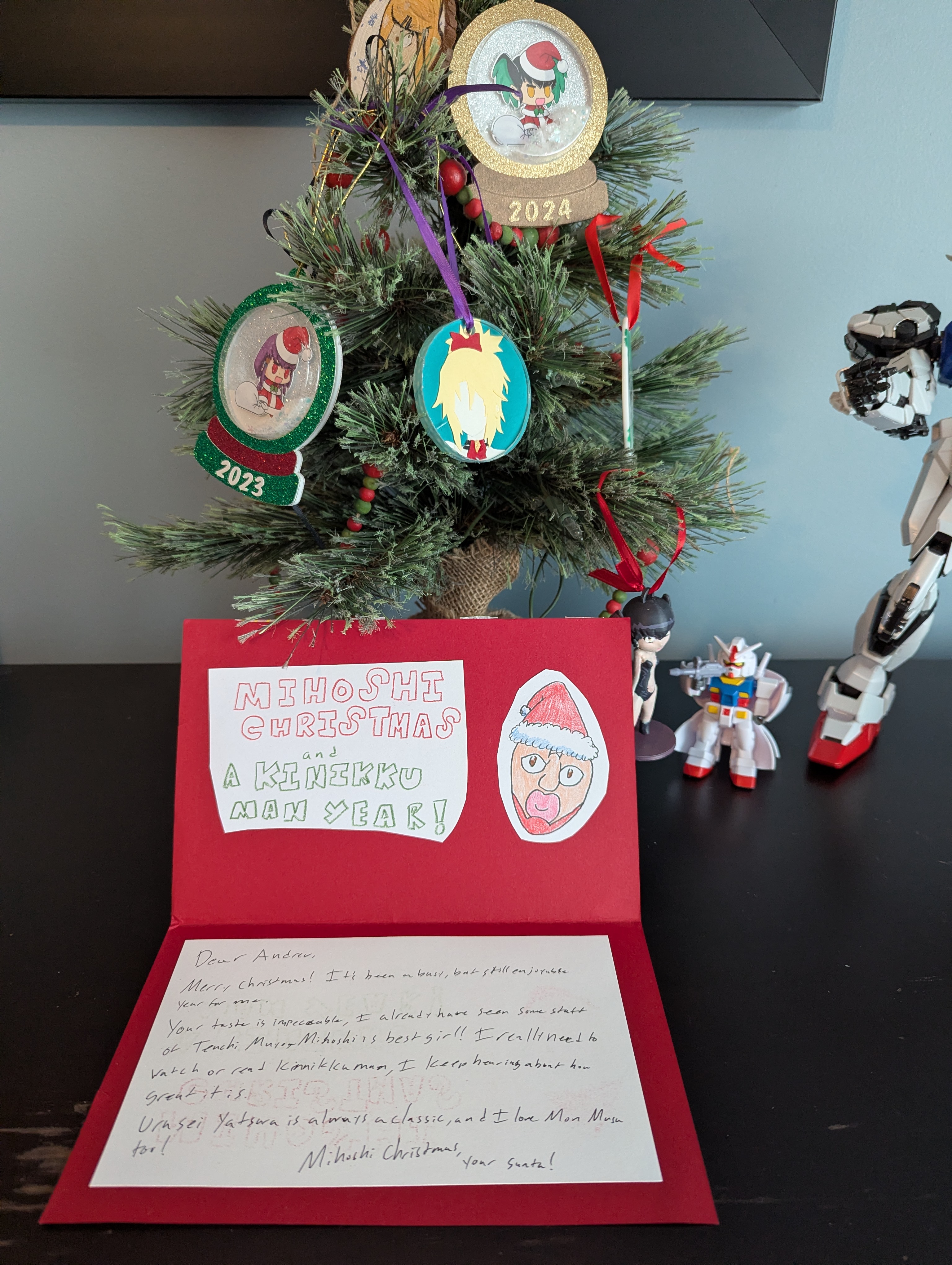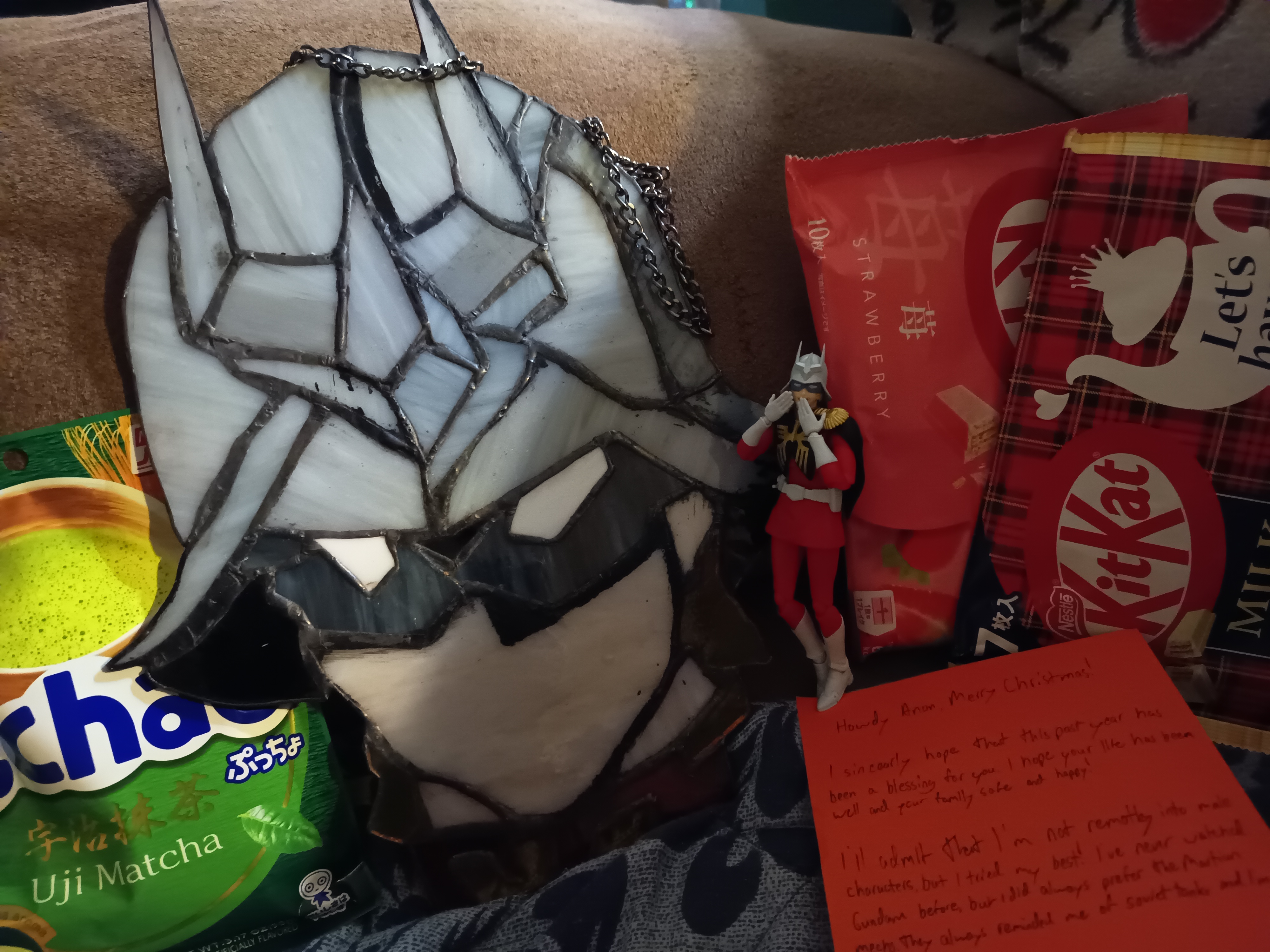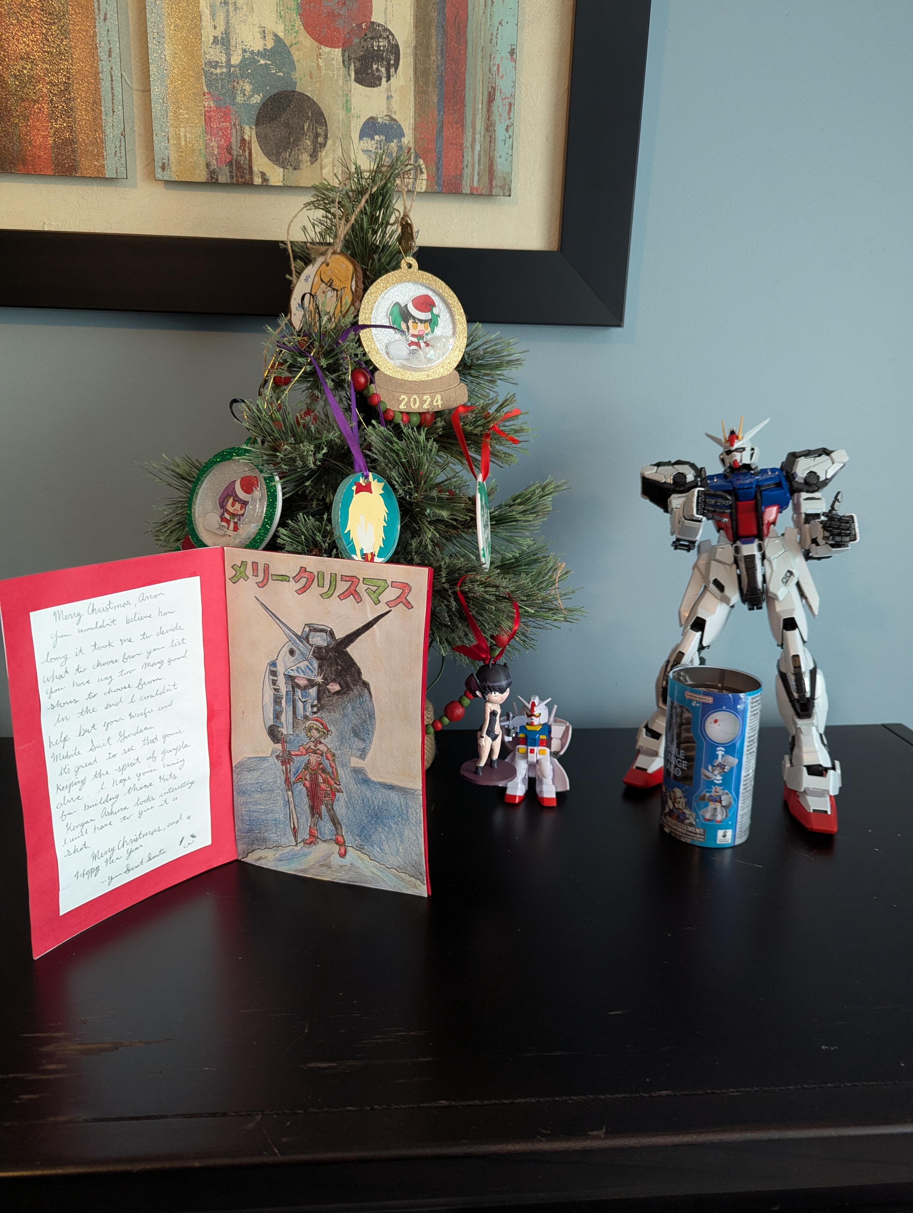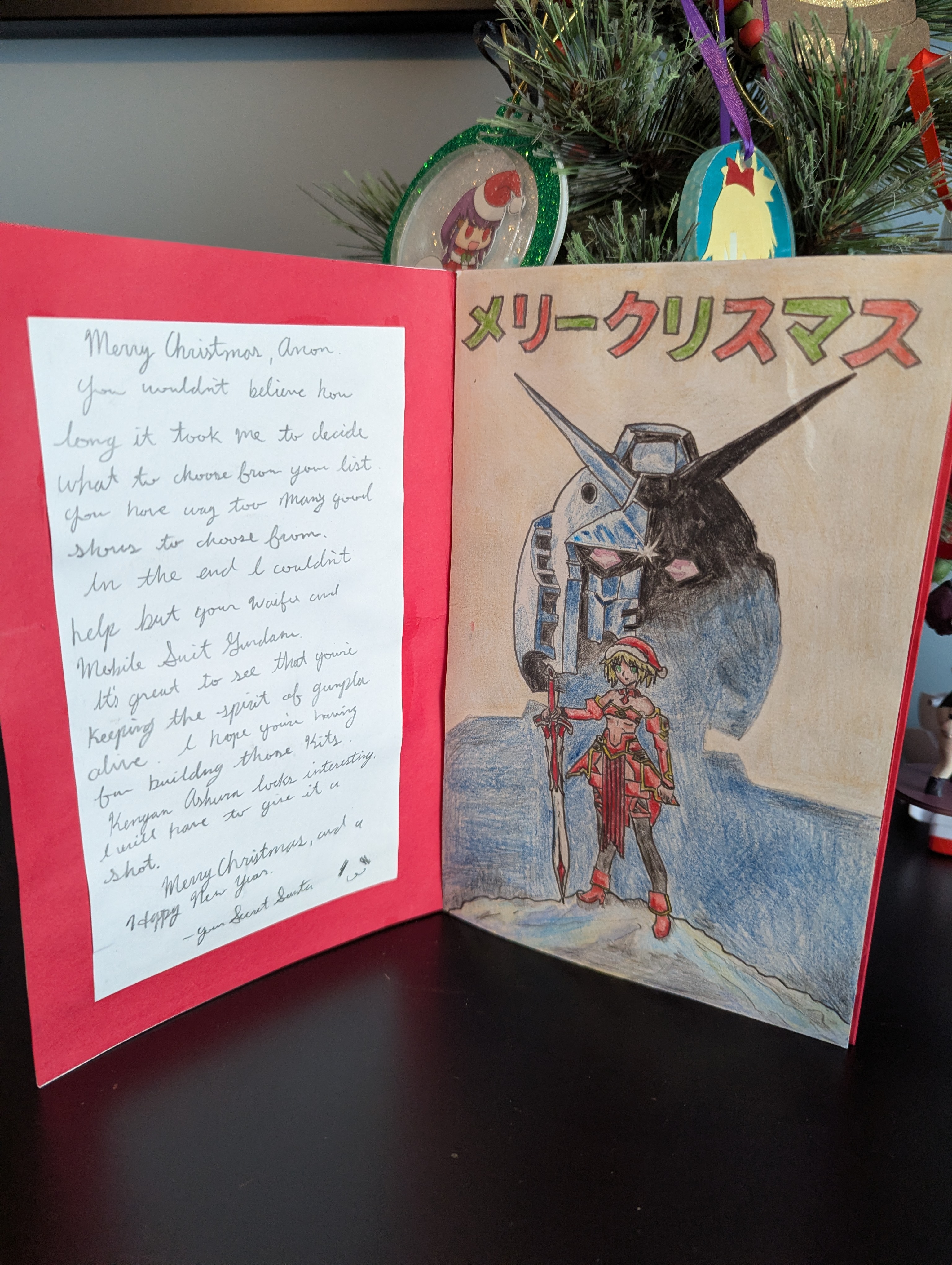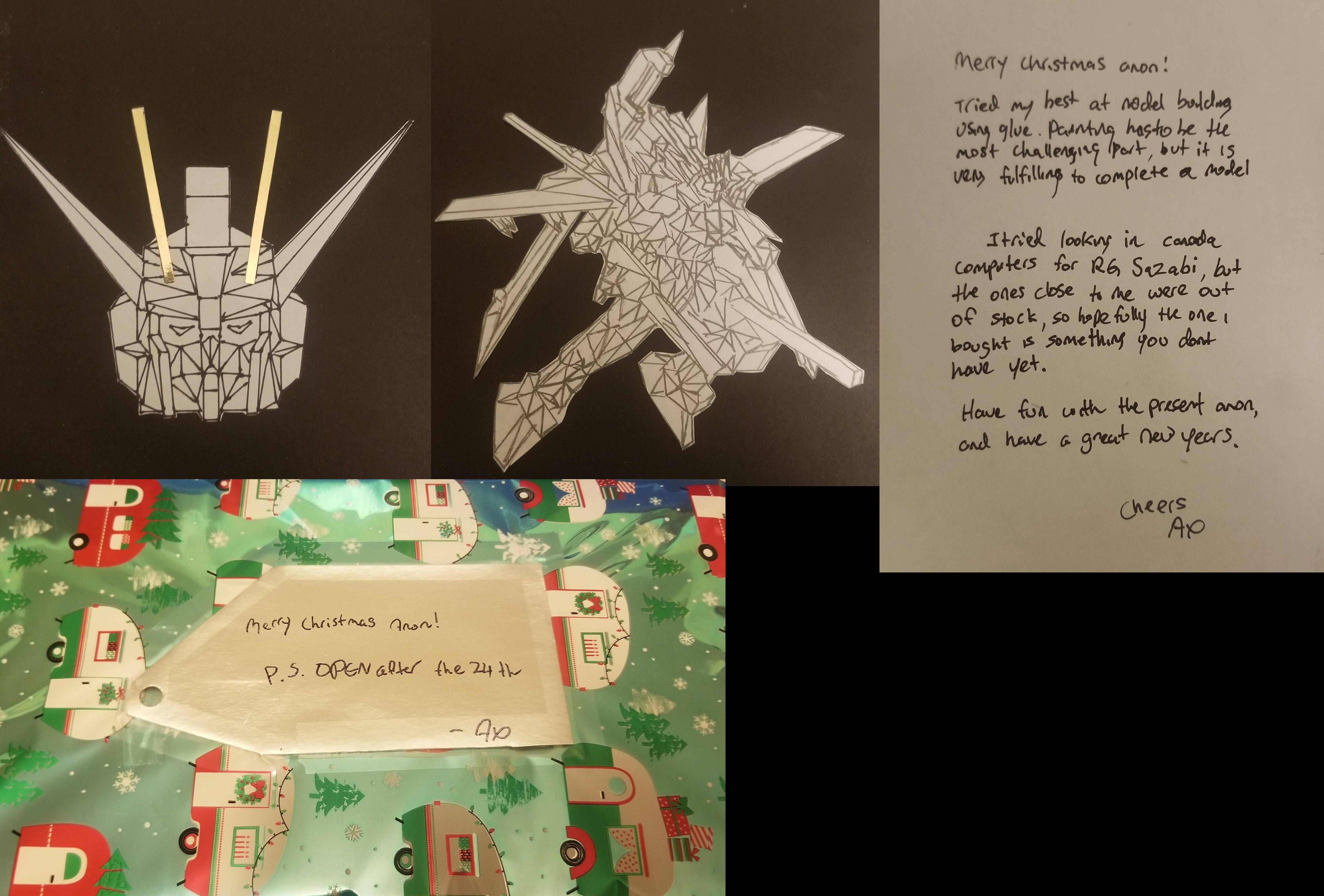 >>284663894>>284663937>>284664470Hey I'm glad that the card got to you safely. I never know with the way the post office has been the last few years. I'm happy that you like the card and the lil' toy! I had a lot of fun making the card. I'm seriously going to pick up Kengan Ashura on your recommendation, looks like it should be pretty damn fun.Merry Christmas, Anon!P.S. That Strike Gundam is pretty damn snazzy!