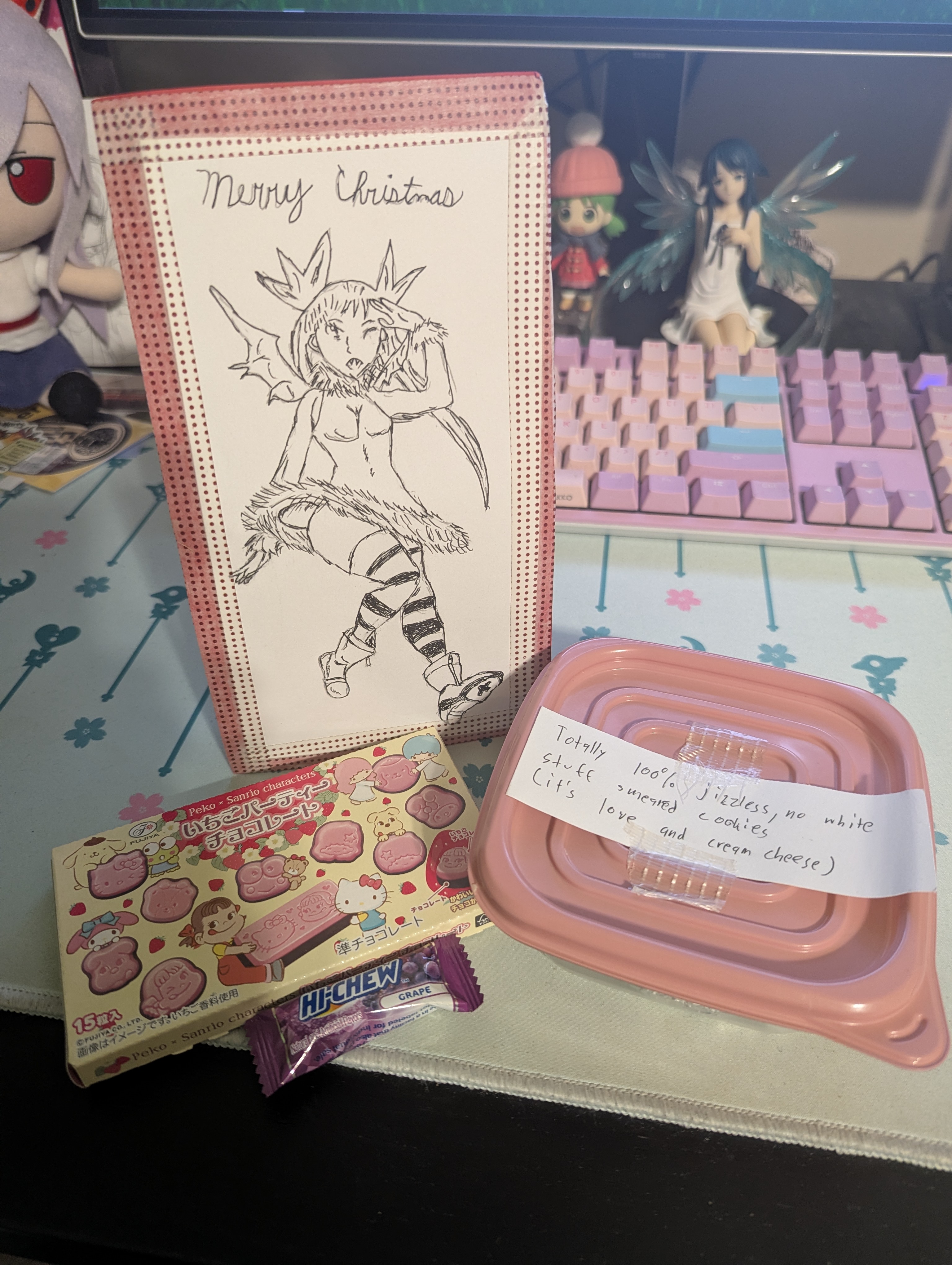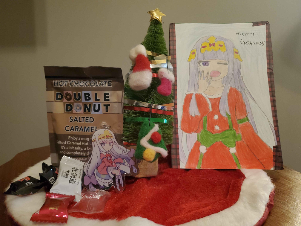 And last for now is AC of INI did receive a completely DESU card last year, it was fantastic. Thank you for the adorable Suiseiseki drawing!I'd agree, Tanpopo is my favorite of Medusa's gang. She's so cute and endearing. While I'm aware of it, I haven't interacted with GFL; the only gacha I play is mahjong soul.Thanks again for the cute card and snacks, and Merry Christmas!