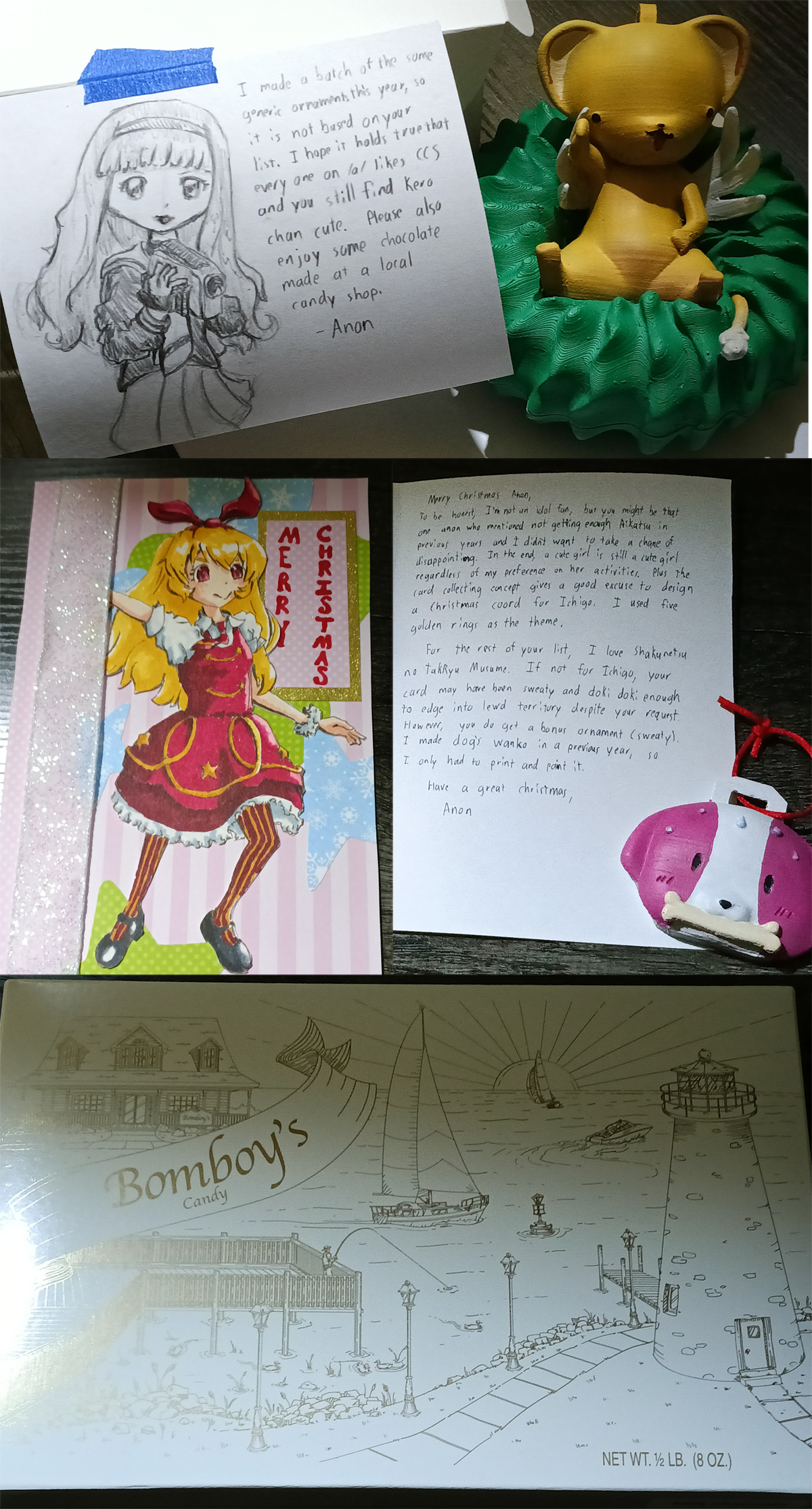 >>284447104Hey Anon! Glad to see you enjoy the Miyu nendroid, I'm watching Soro no Woto for the first time and so far it's pretty good. Love the festival scene, good introduction to the anime. Merry Christmas!>>284615782Glad you enjoy the Alice nendroid, I wanted to get something nice for you and my other whitelist anon. I'm not against Slice of Life but I perfer some comedy mixed in so Aria wasn't my cup of tea. I got in total 5 international so yeah the cost blindsided me. Lesson learned for next time. I have spent in total $228.98 so that's on me>>284628860Not a lot of candy honestly, I fucked up. I spent in total $65.68.>>284628981Yeah this was my first time doing international and I got the snacks because I felt terrible sending my cards late. Should've just taken them out.