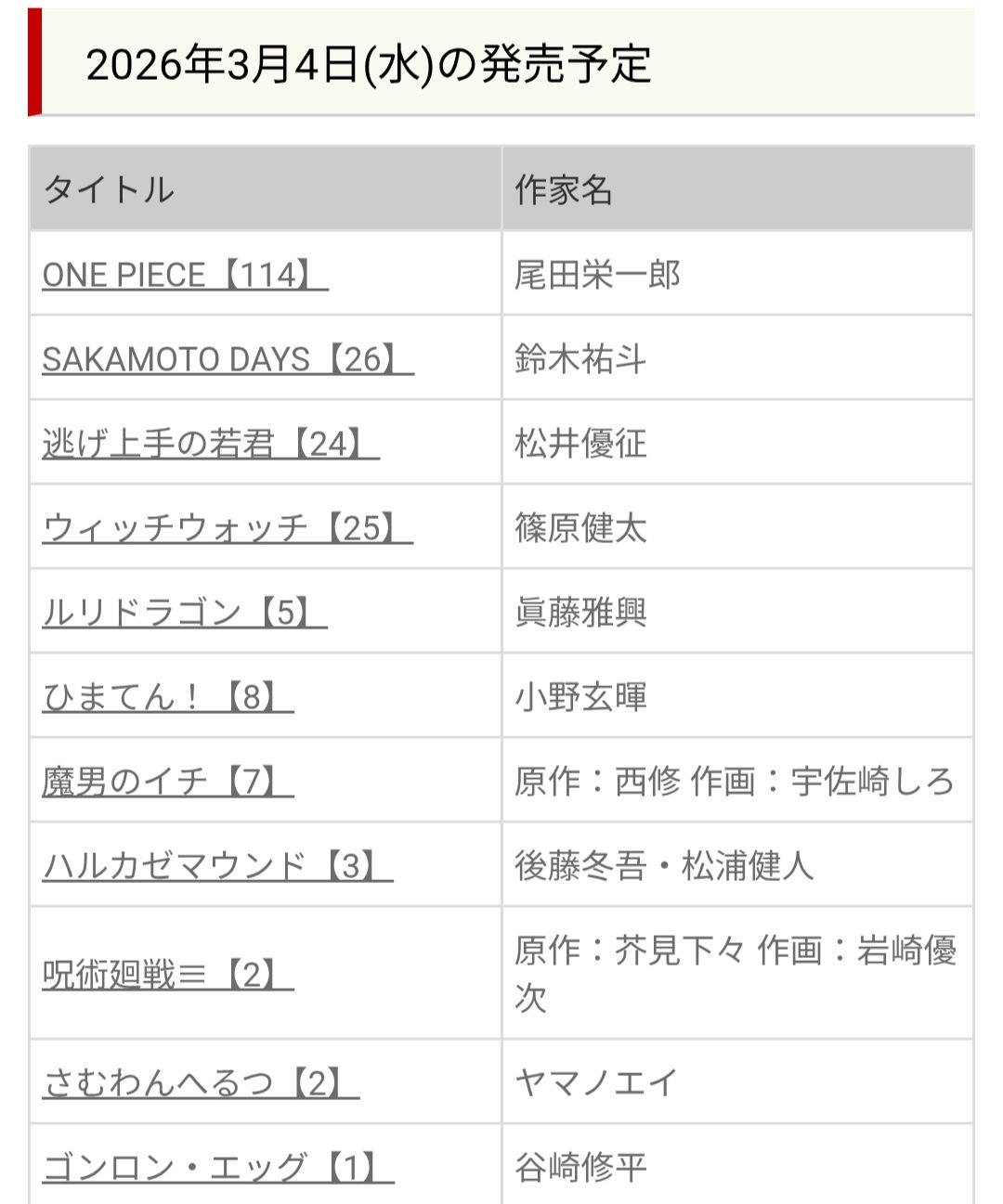 >>284630016Amazon Pre Order:Digital / PhysicalJujutsu Kaisen Modulo 1 #12 / #20Kagurabachi 10 #23 / #55Akane-banashi 20 #603 / #982Someone Hertz 1 #1,518 / #2,831Hima-Ten! 7 #1,929 / #4,648 Shinobi Undercover 6 #2,608 / #6,572Ping-Pong Peril 2 (final) #7,732 / #27,171Harukaze Mound 2 #12,359 / #24,935 Ekiden Bros 2 (final) #44,410 / #127,421