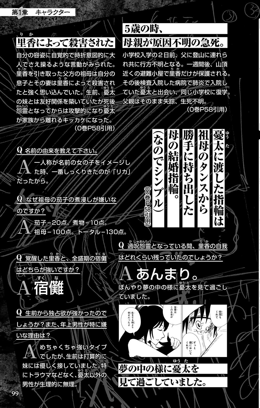 If anyone was wondering , we might get extra info for the volume 2 charactersHere are the ones shown >Dura>Dabura (technically volume 1 but he is more fleshed out here)>Osuki>Jabaloma>Maru and Cross (backstory revealed in this volume so they're featured here instead of vol 1)>Miyaguni >Yakumaru>Kyoko>The glasses girl (potential Shoko x ichiji granddaughter >Nobara