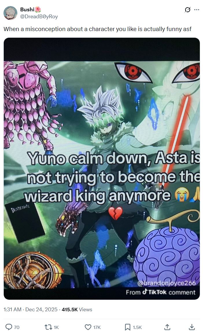 >>284701143There's a reverse megumi slander for yuno from blackclover because he gets a powerup ever time and upstages the mc