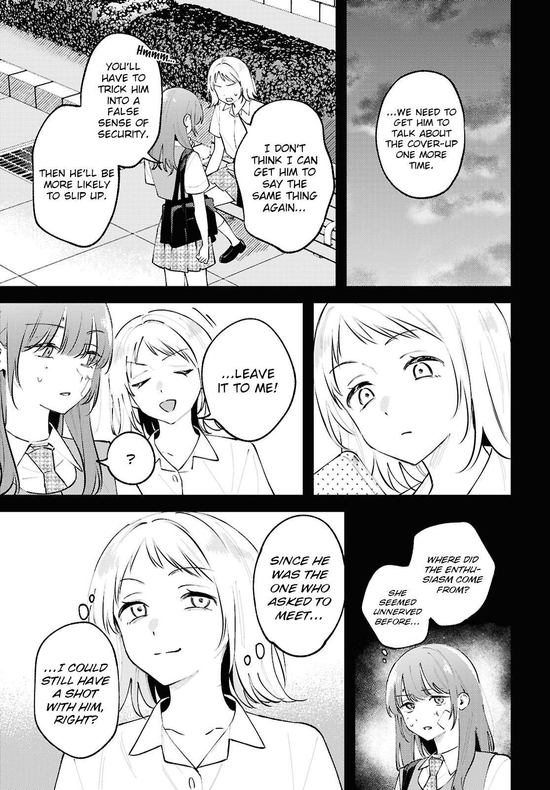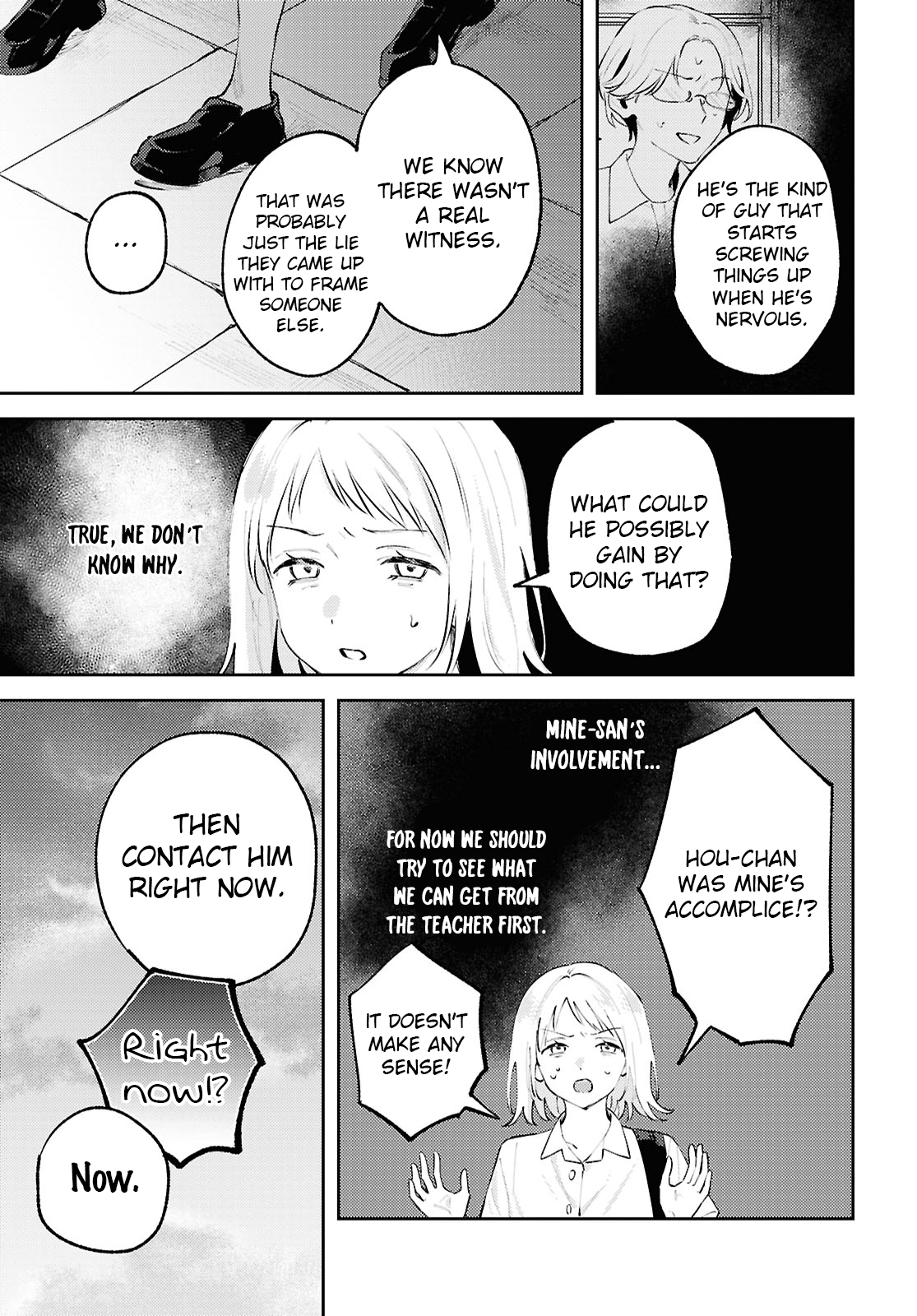 >>284755638Well, Mine was obviously threatening him and set up the meeting, I'm not sure what she gets out of him having some talk about what they would do after graduation, guess she just Inazuma to be under her control? Though while he blamed Mine for the festival it seems to me he may just have assumed this because of what was happening since unless Mine literally told him she did it, he would never know. I am really starting to wonder if the twist isn't if Naoi did it after all.