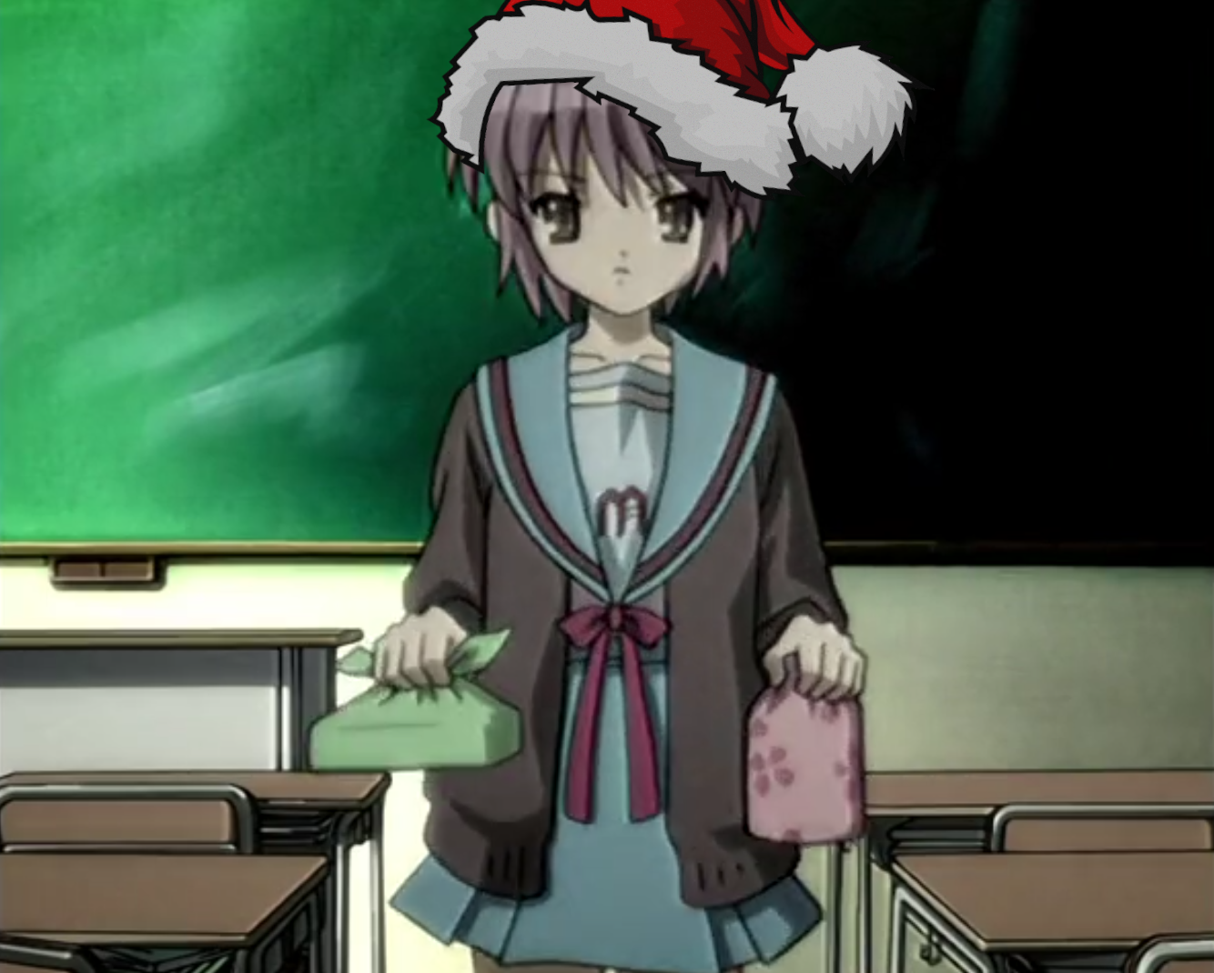 Kyon as always isn't in santa clothes