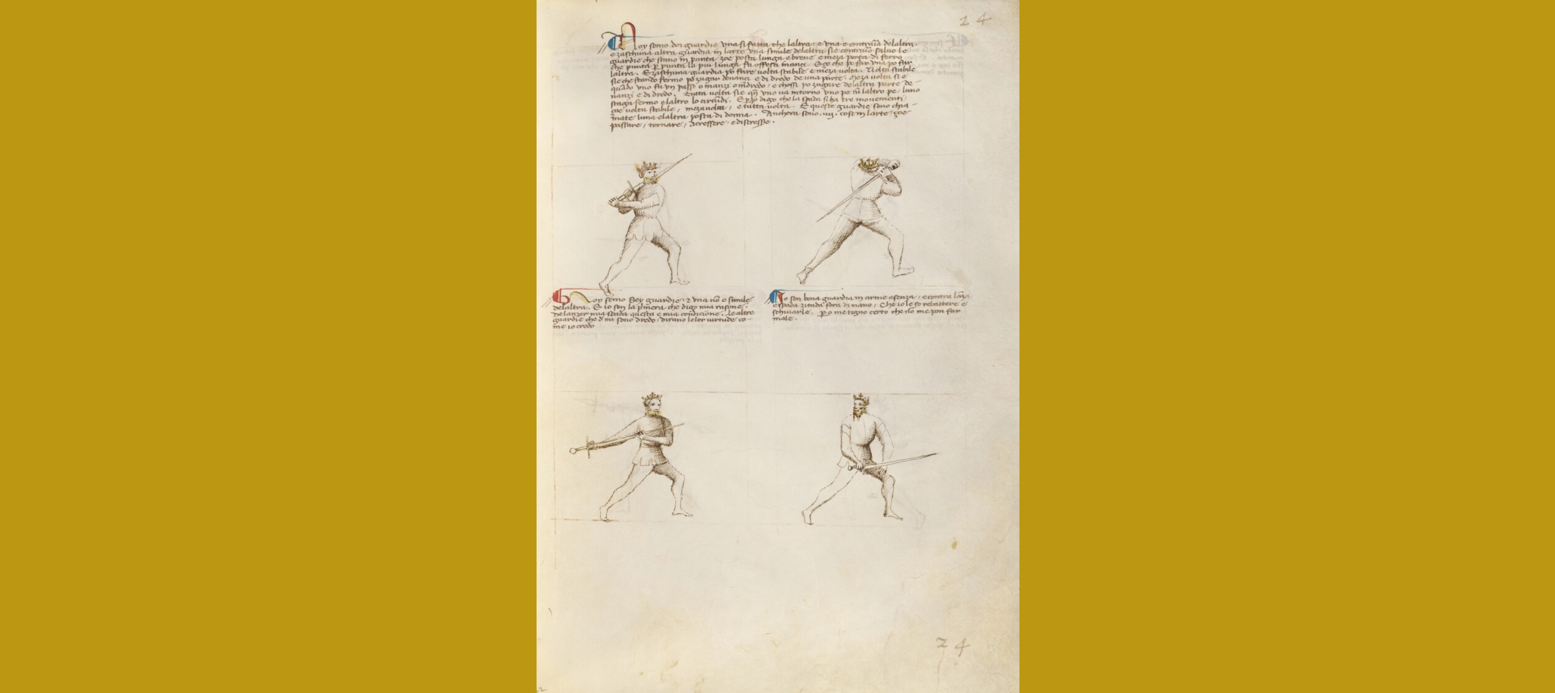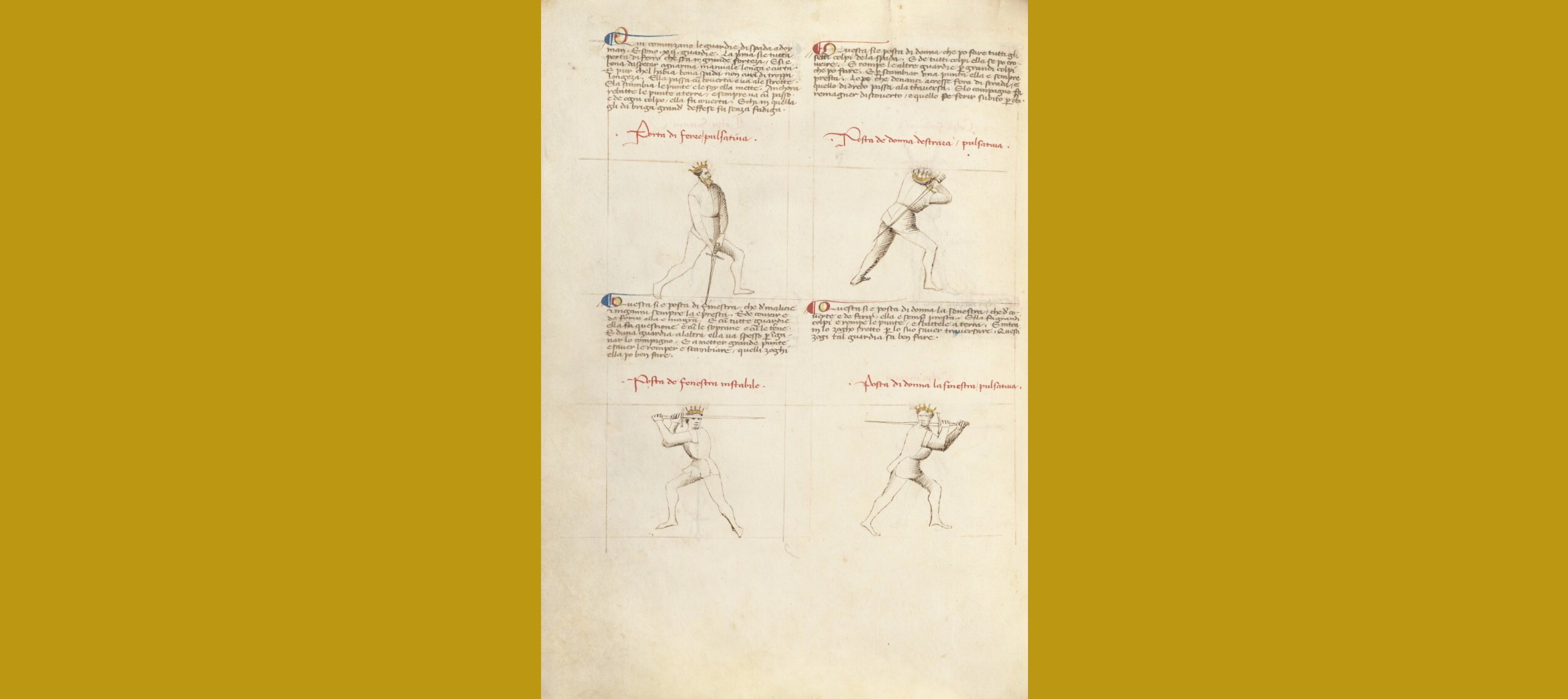 >>284740968No samurai would take that stance on a battlefield, but for unarmored dueling its only 'open' and amateur if your opponent has the guts to walk in on you. Katanas absolutely can stab, but the point of that stance is to instill fear, that even if they do stab into you, you'll still chop through them with all your power. Its basically a way of forcing distance unless your opponent has the confidence that they can defend your hit. But if you look at European fencing manuals, they often feature exaggerated "come on in if you can, pussy' guards and stances for use in duels. This is from Fiore dei Liberi's manual. These leave you wide open, but also are scary as hell to try and walk in on.