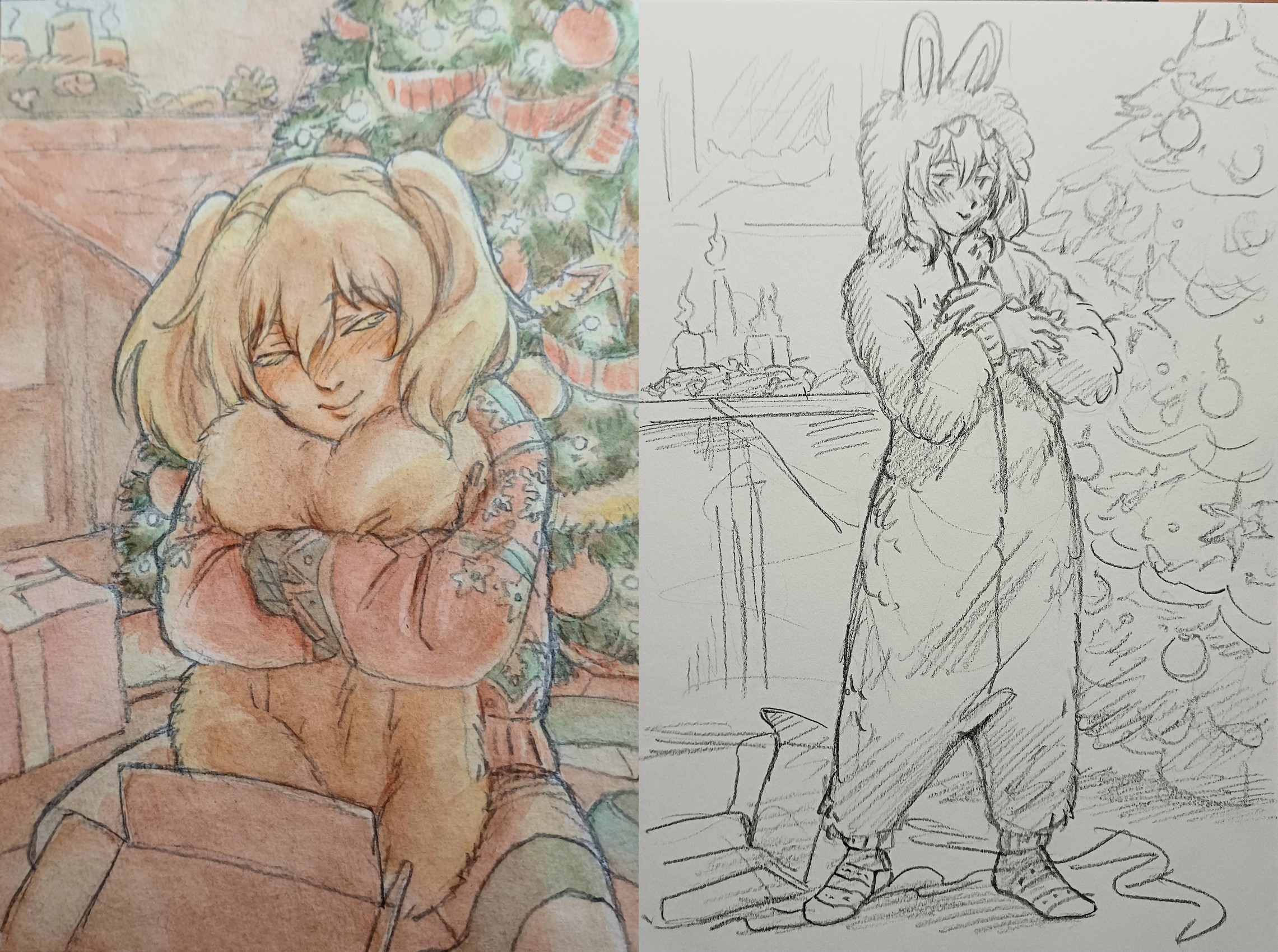 A very Labubumas Christmas to all!I initially added the labubu onesie as a shitpost, but it really grew on me and Anastasia would most likely find labubus cute. Her smile is so precious and she looks so happy in both pictures. I want to strive to be the type of man that can keep making her as happy, or happier, than she is in this. She truly means the world to me and I wasn't expecting to be so overcome with emotions upon getting my ss. A huge huge huge thanks to santa once again for organizing this and of course to medievalanon for the precious drawings. I will forever treasure these. <3