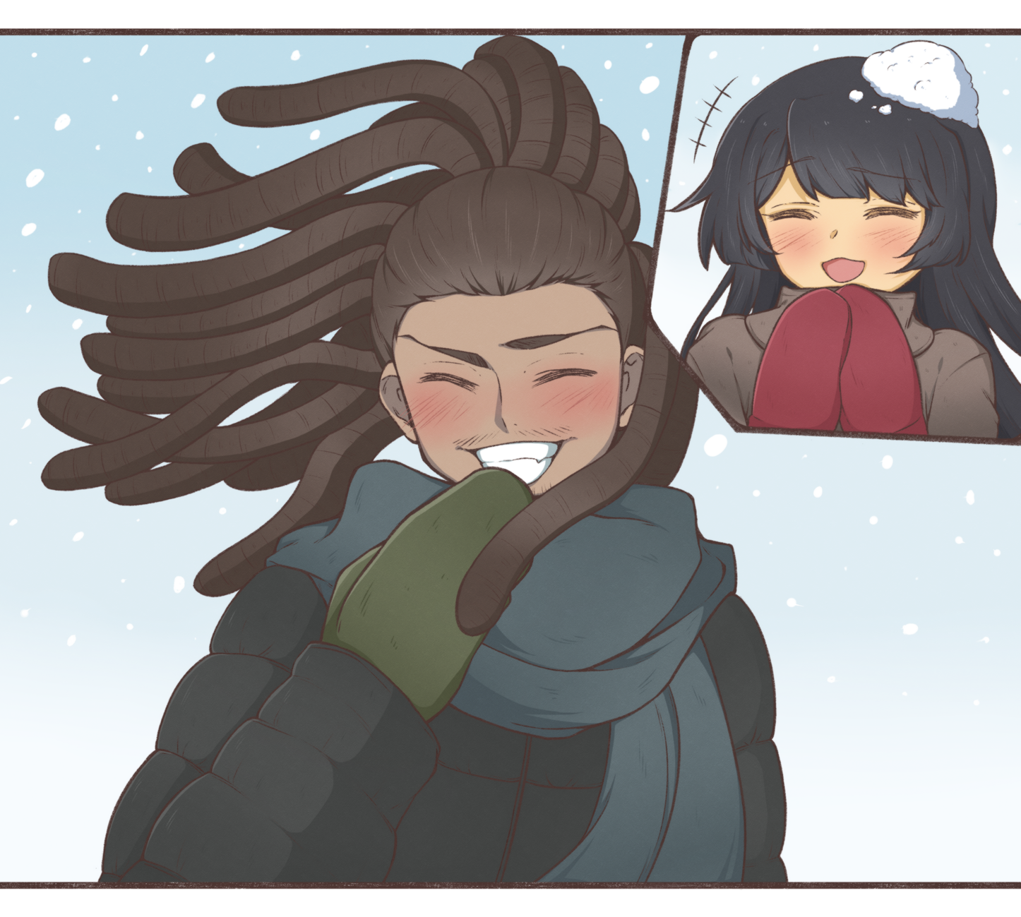 >>284807473AAHHHH, I'm so glad you like it!! I seriously dig his design, but I've never drawn anyone like him before, so it was a real struggle for me. I wanted to do him justice SO bad. I wanted to draw something fun and mischievous, so a couple's snowball fight seemed like a fun idea to me. I would have wanted to maybe include a panel of him actually throwing the snowball/about to throw it, but I wasn't able to do that. I'm happy I was still able to get the idea across though! Hope you had a great Christmas with him! >I saw your other version as well but I like them both. I hope you didn't fret over it too much.No..,,. I don't know what you're talking about,..,I'm Homurafag, if you still want to know. I don't really have an artist name I go by anymore, but I technically have a tag on the booru. You could check back later and maybe someone will have tagged it.
