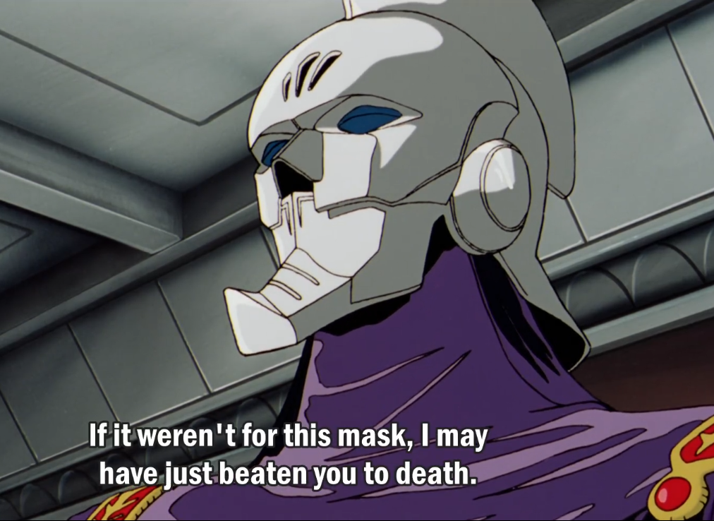 I think I just sighed when I first watched this. It's so tiresome to dig through Gundam trying to find the "mature" anime that /m/anbabies are always talking about, just to be served the most ridiculous bullshit imaginable.