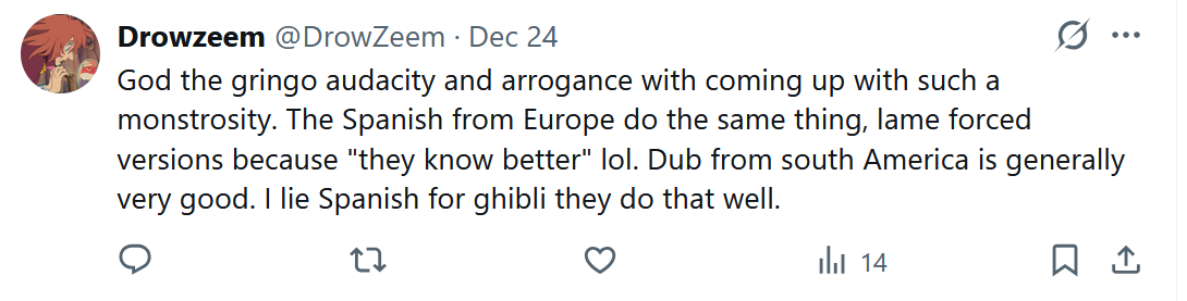 >>284794625You thought "old good new bad" only applied to the content of the show itself? Attempt to translate any classic dry and literally and you'll be told you removed the soul.