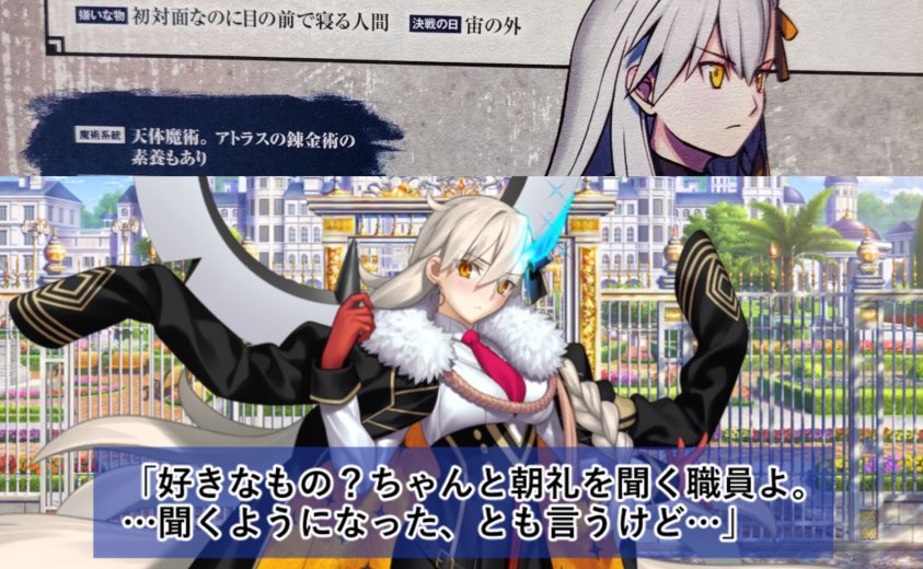 >>284804833>it's not like she developed or anything, we just skipped to Olga being the keyI wish there was something before U-Olga and the fragment of sorts that you finally get closure on in Fuyuki. The former got development, but the whole point of it is that she both is and isn't Olga. The latter is end of development Olga. We end up with a character with a point A, B and C, except they're less a straight line and more isolated sequentially.They could've done a David Bluebook approach after LB5 as a workaround. Beginning and also end of chapter flashbacks that don't seem to fully make sense before the eventual reveal it was just Olga hallucinating from going insane, but the experiences felt real and caused personal growth? Maybe in the inevitable full manga adaptation.