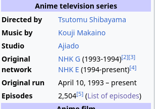 Nintana Rantarou has over 2,500 episodes and none of them are available in English. The only way to watch it is through a Spanish dub for episodes 1-100, or a Chinese dub with abysmal quality and many missing episodes. I've said it before and I'll say it again. The Western anime community needs to stop fucking around and work on preserving children's series. That means doing more than magical girl shows and Chiikawa.