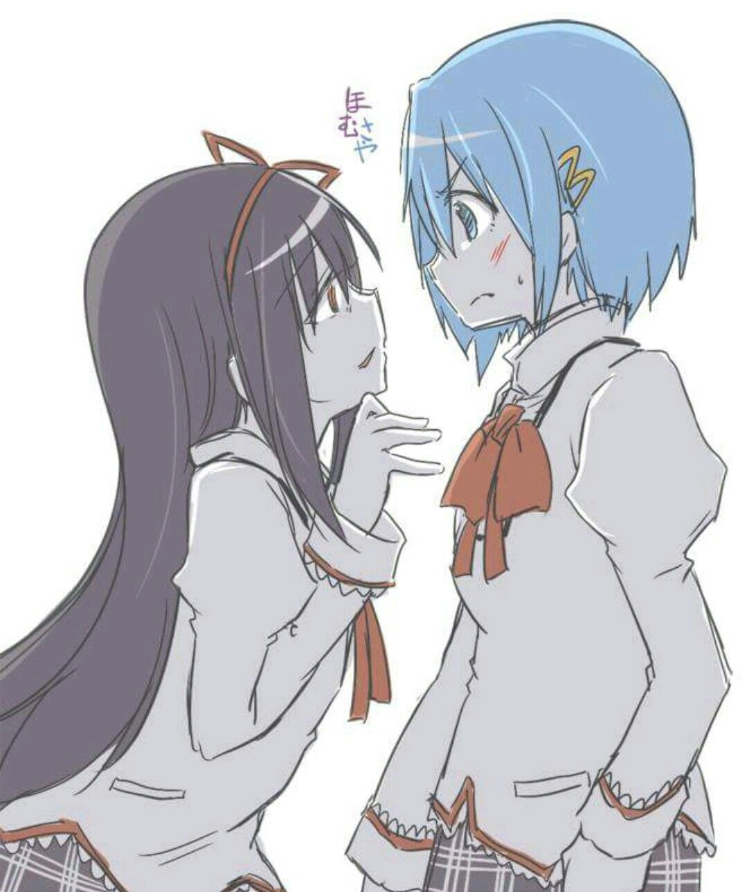 Is true, Homura and Kyouko are the girls in the show that has not shown explicitly interest in boys.Just those 2 for some reason.