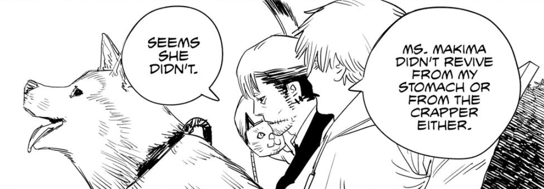 Reminder that Denji dismembered, devoured, digested and shat out Makima. Literally. Turned her into turd. Her entire existence... became one thing and one thing only - Denji's excrement.