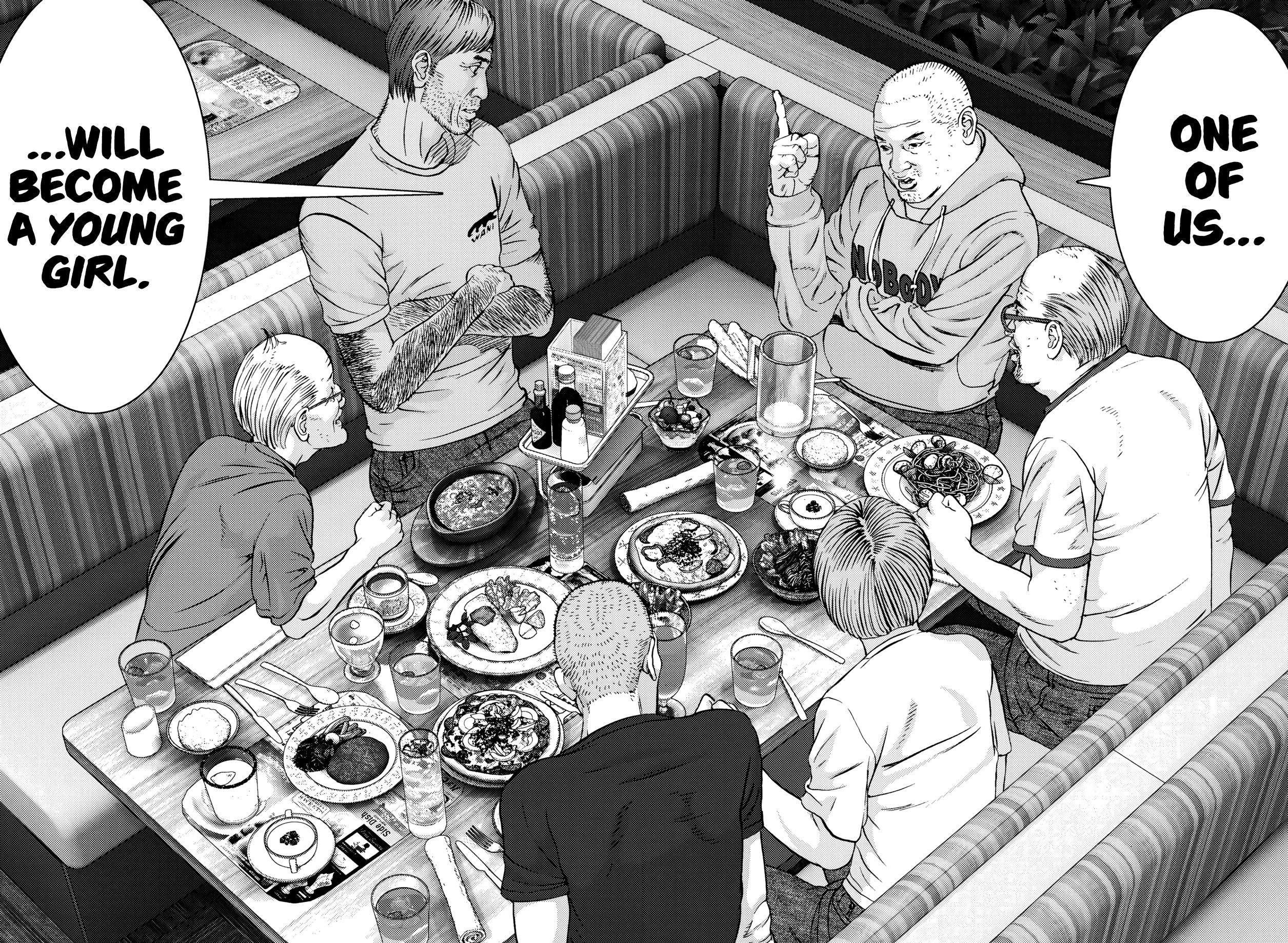 This time it's the Gantz author. His new manga The Sweet Sixty Princess:>The plot revolves around a group of six otaku men in their fifties who live together in a shared house. Their routine is disrupted when they discover a mysterious drug, "Neotype 16," capable of transforming anyone into a beautiful young woman. One of the characters suggests that one of them should take the drug to "help others."