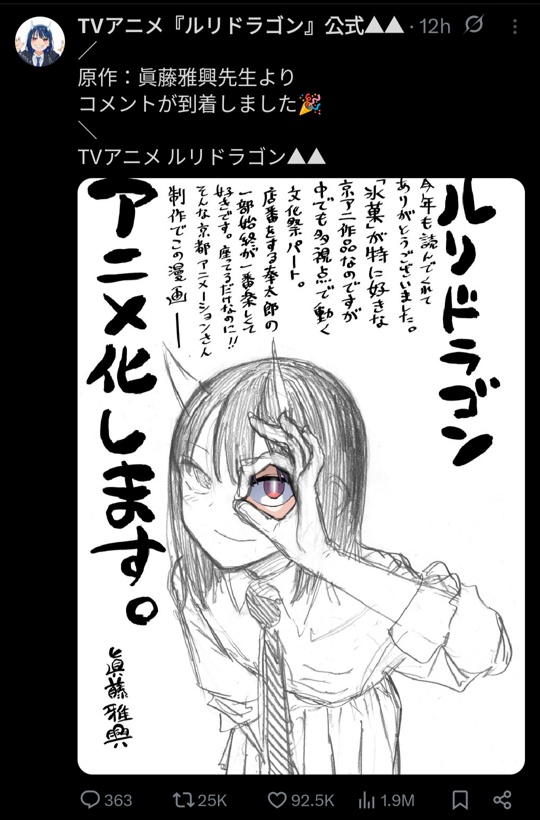 I wonder about the specifics of the ruri deal kyoani likes to have a lot of control over the properties they adapt, it's almost as if the magazines had to relinquish control of their series. I wonder if jump asked something in exchange
