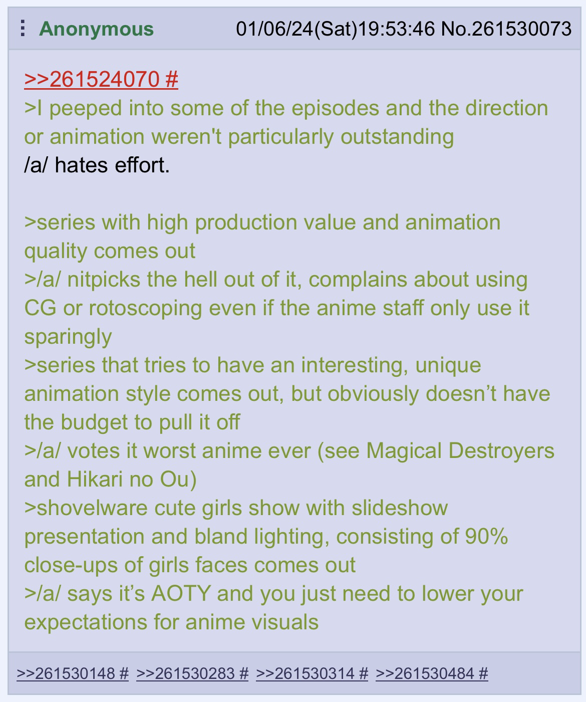 >>284835560Another year of nothing but shite.Anime is fucking dead.