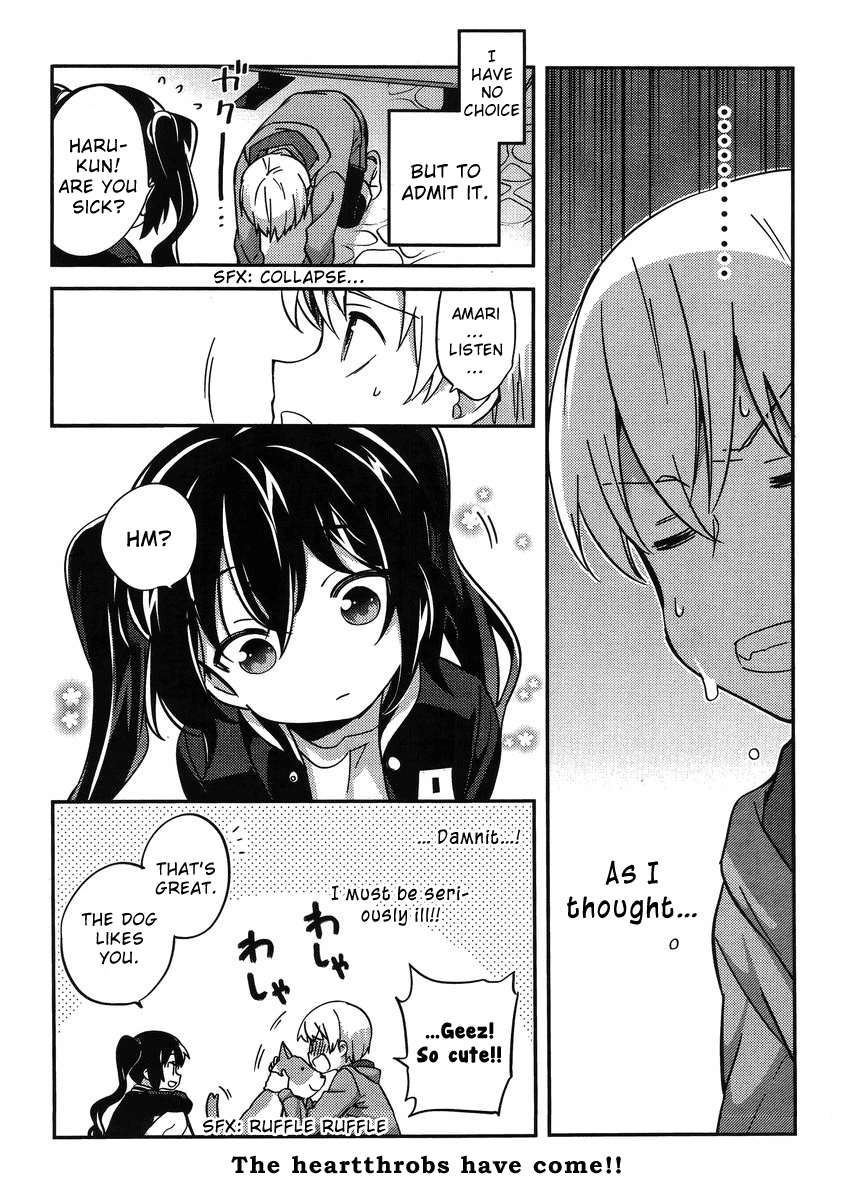 >One day a friend of his sees the contents of a certain book Haru has... a book containing some pictures relevant to Haru's "interests..." and, due to a misunderstanding, throws it out the window! What are the contents of the book? Where did the book land? You'll find out when Haru goes to get it back.