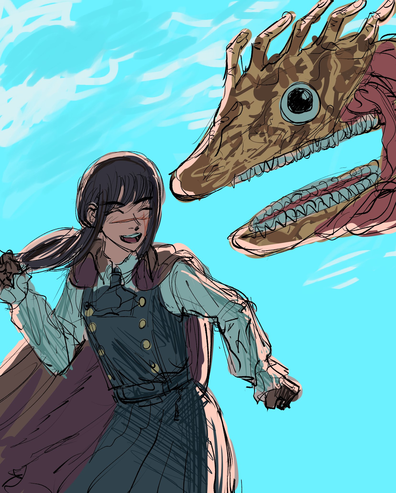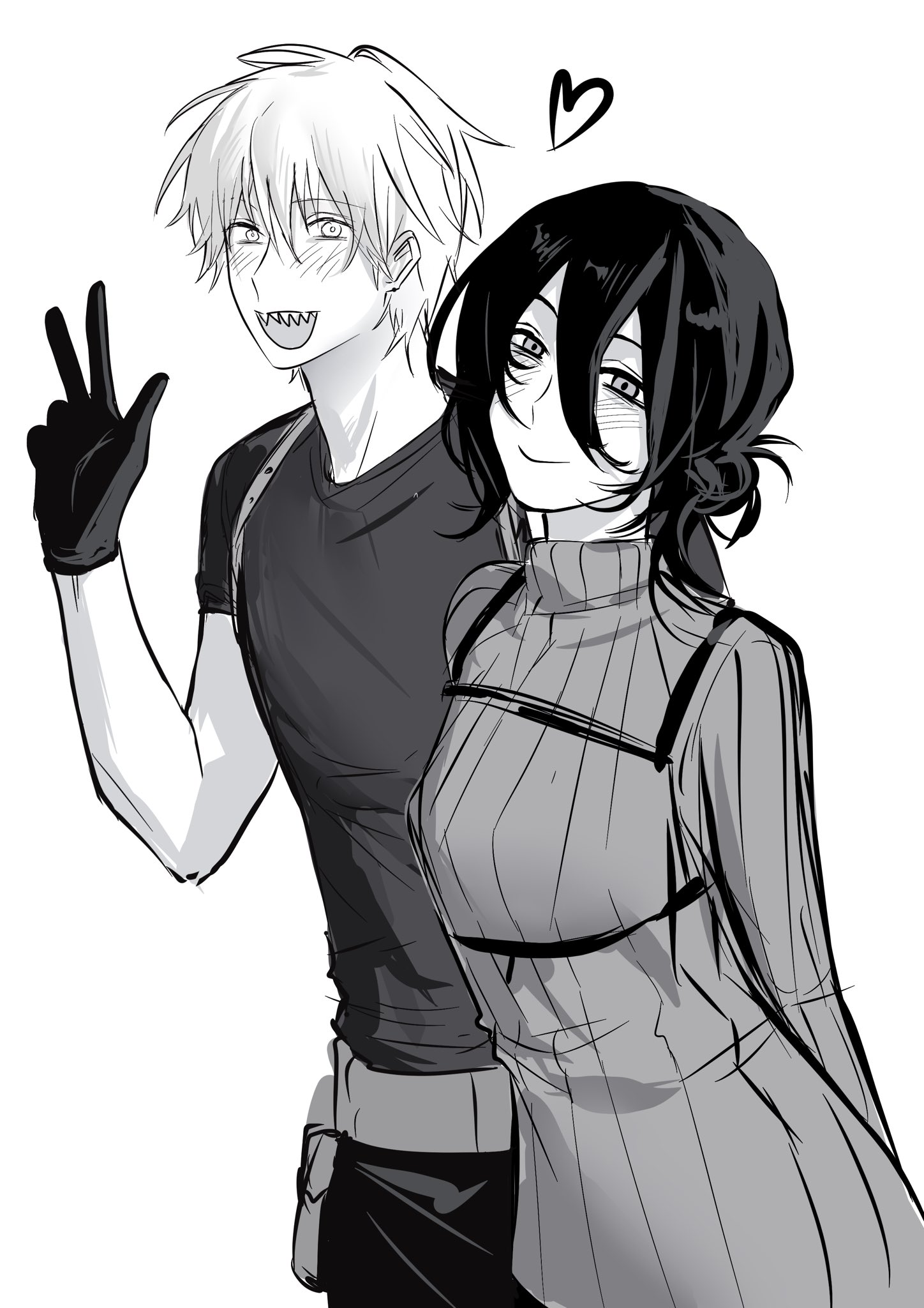 I don't ship them, but I kind of like Denji and Lil D's aesthetic. They're both cannibals and have funny interactions.