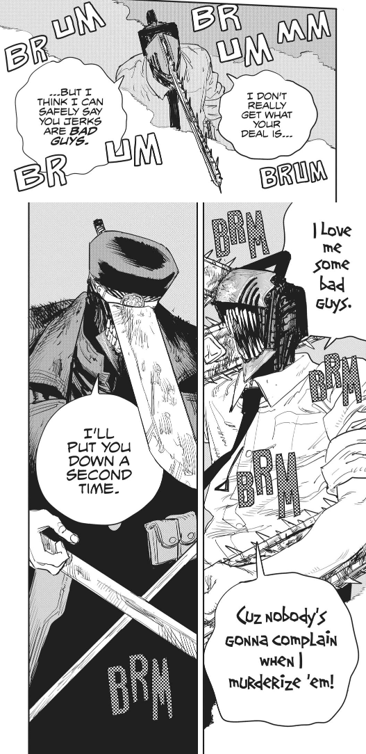 >>284869068>"My dogs... my house... oh no, guess I gotta fight! Haha this sucks oh nooooo">"GOD I FUCKING LOVE BEING CHAINSAW MAN">"Nayuta? Eh, she'll probably be able to escape. I just want to have fun!"Denji would NOT act like this...