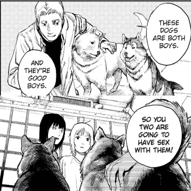 >Denji: "I asked Pochita. As the demon of control, Makima-san wanted a relationship as an equal. That's why he said to hug her a lot. But I don't think it's good to just forgive her..." >I look up and see him talking. A wide smile was plastered on his face. >Denji: "That's why I'm going to make Makima-san my dog! I think Makima-san has a habit of looking down on people. So, first of all, in order to correct her stubborn personality, I want her to become a dog and experience what it feels like to be looked down upon! Then, I think Makima-san will be able to understand other people's feelings and be able to get along with everyone as an equal!"